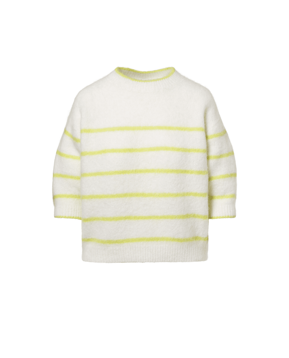PENELOPE Pullover – Gebreide dames trui van Beaumont met strepen dessin, alpaca-mix, ronde hals en 3/4 mouwen