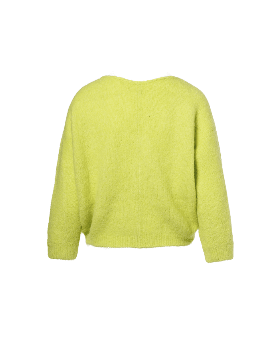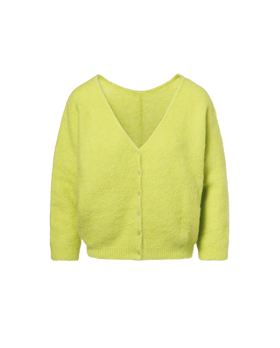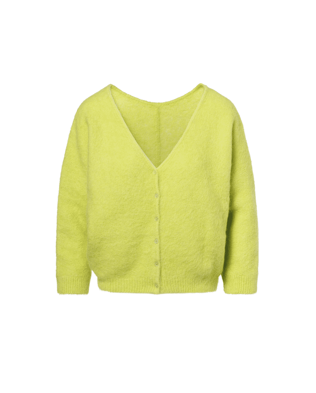 Zacht, luchtig en opvallend – deze limekleurige cardigan brengt energie in elke look. Perfect als frisse laag op koelere lentedagen of zwoele zomeravonden.