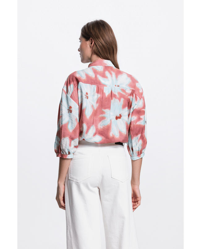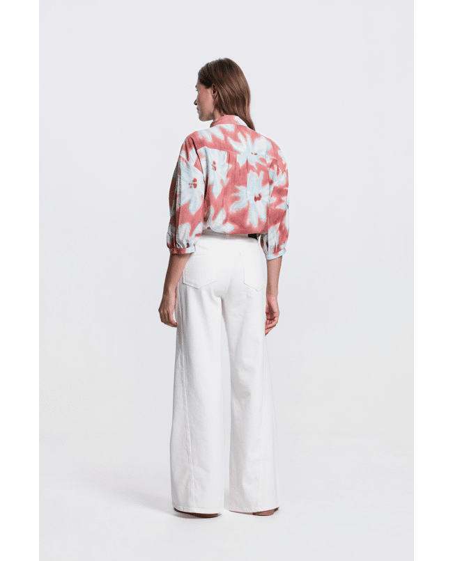 De grote bloemenprint geeft direct een vrolijke, uitgesproken uitstraling. Mooi op een witte broek of als set met de bijpassende broek.