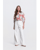 Zomerse blouse met artistieke bloemenprint.