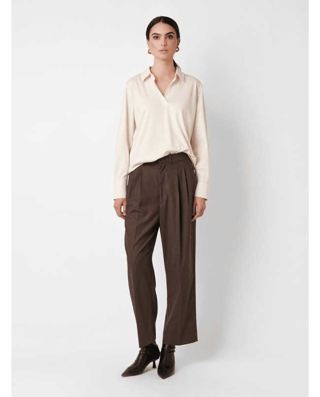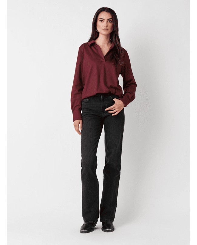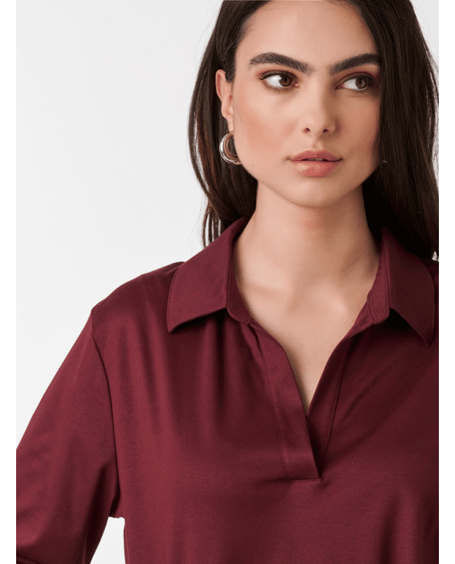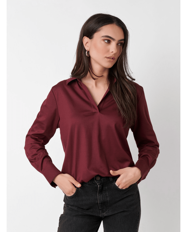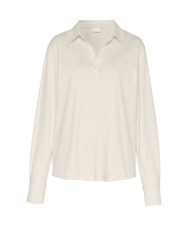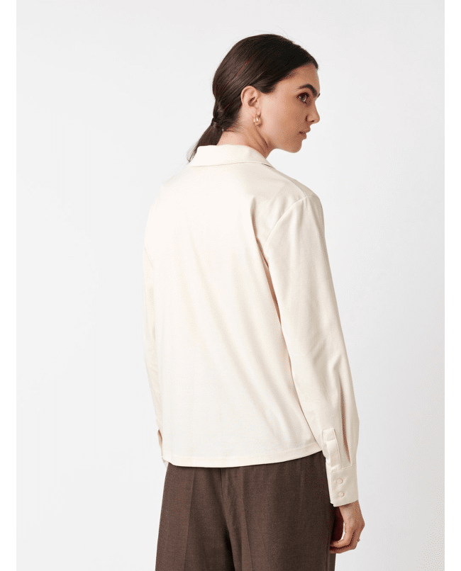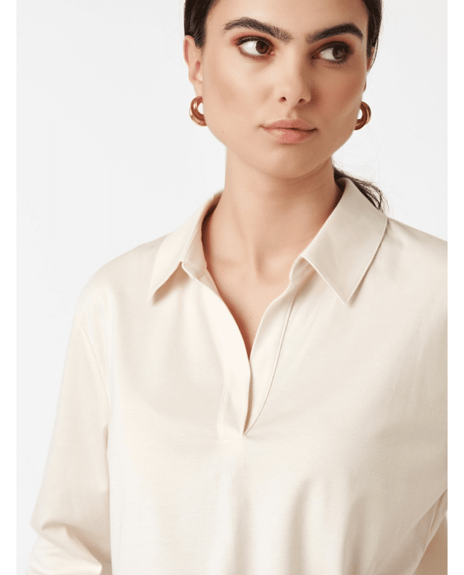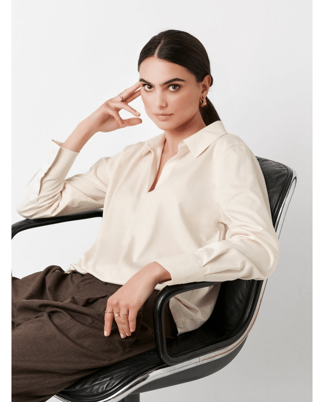 De subtiele glans van de stof en de open kraag geven dit item een elegante twist – makkelijk te combineren van werk tot weekend.