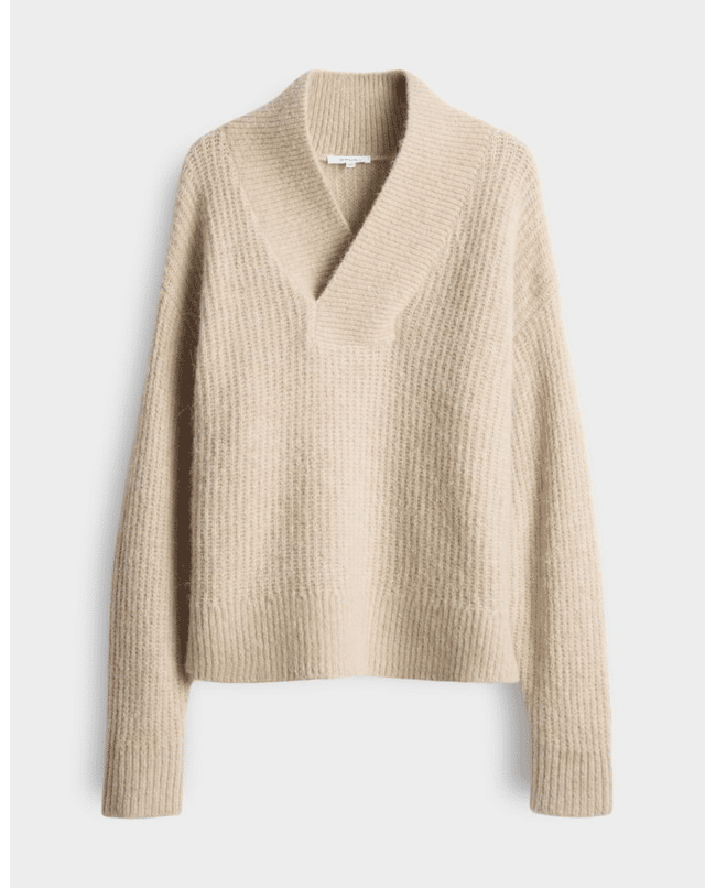 Een warme essential voor koude dagen. De PONELOPE trui is losvallend gebreid van een zachte alpacamix en heeft een V-hals met omgeslagen kraag – comfortabel én stijlvol tegelijk.
