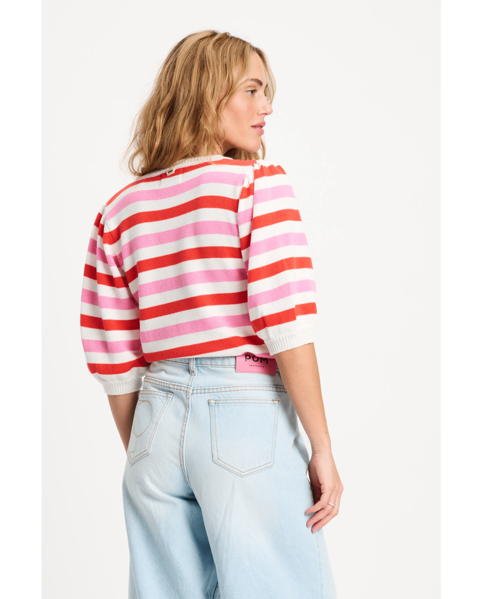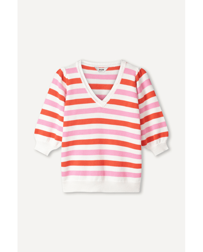 PULLOVER - Striped Pink Orange trui van POM Amsterdam met strepen patroon