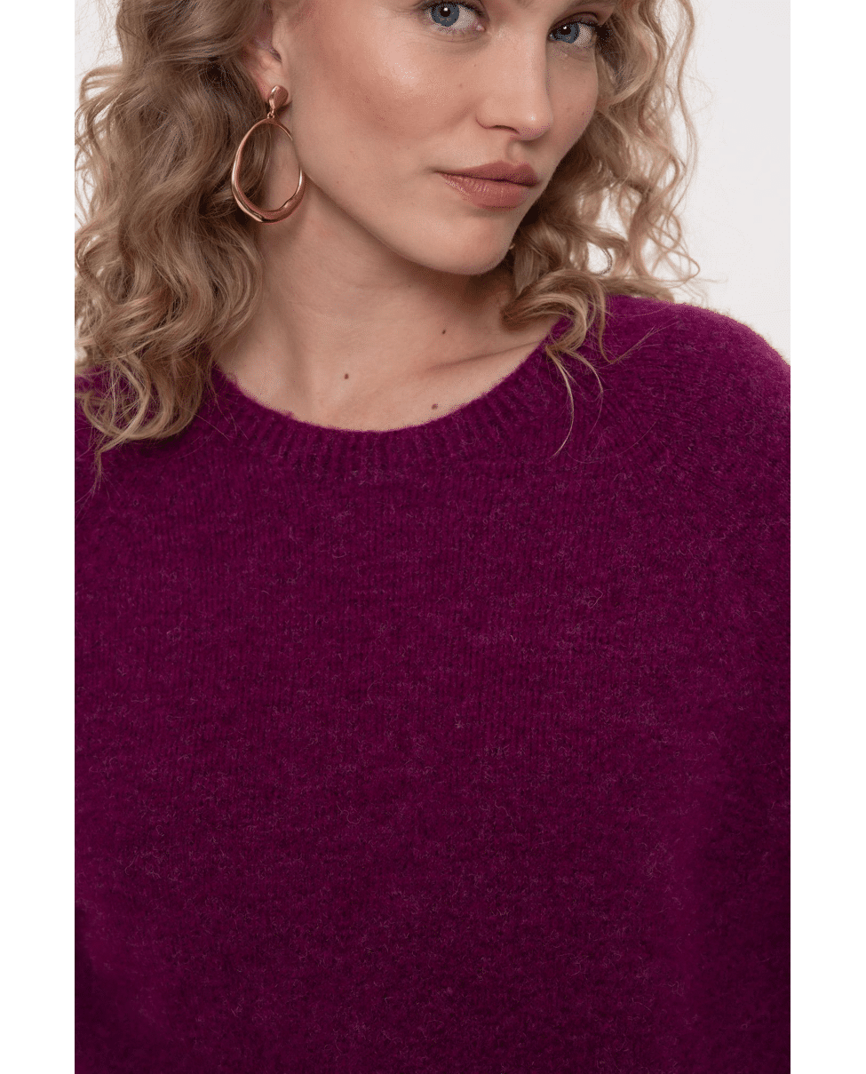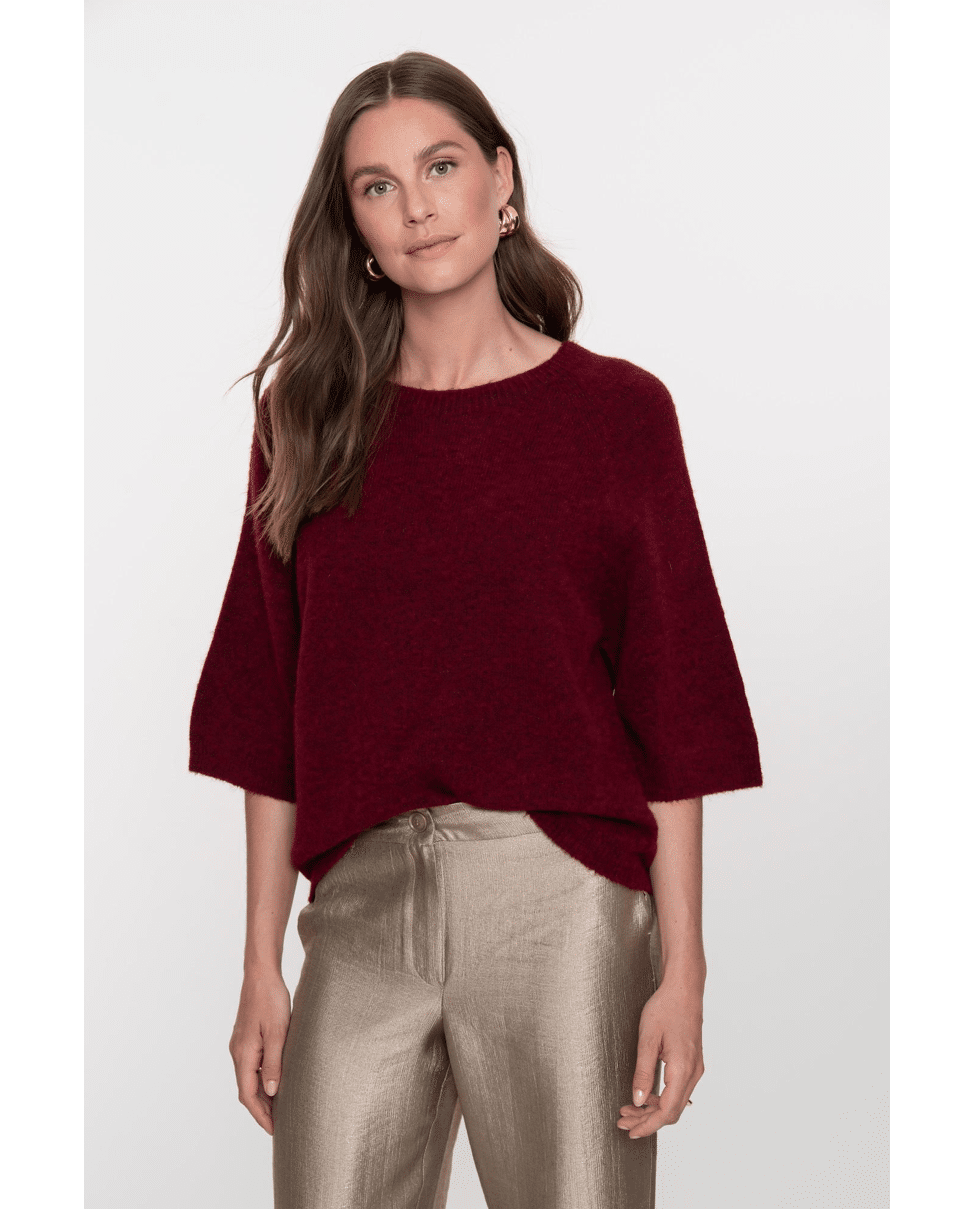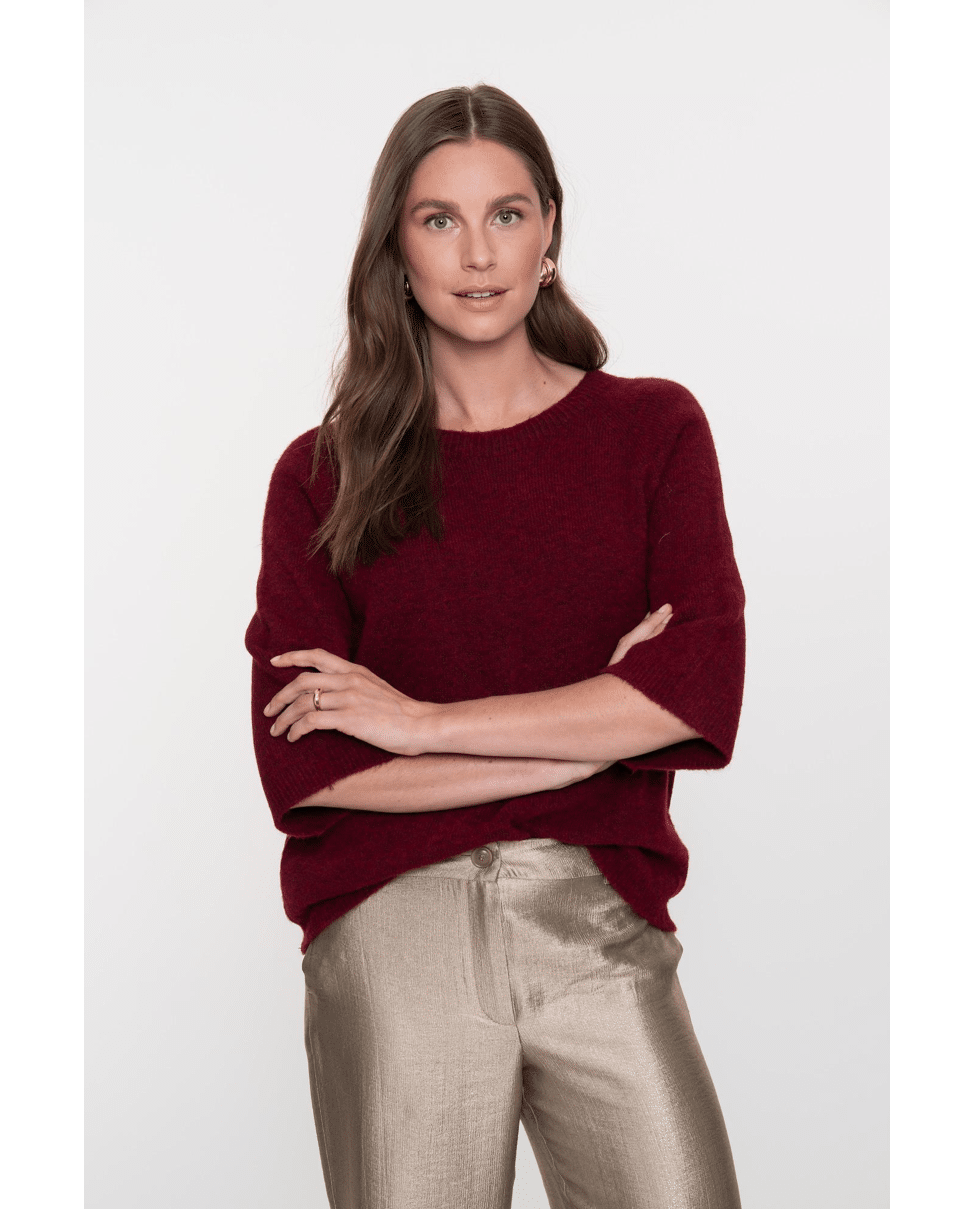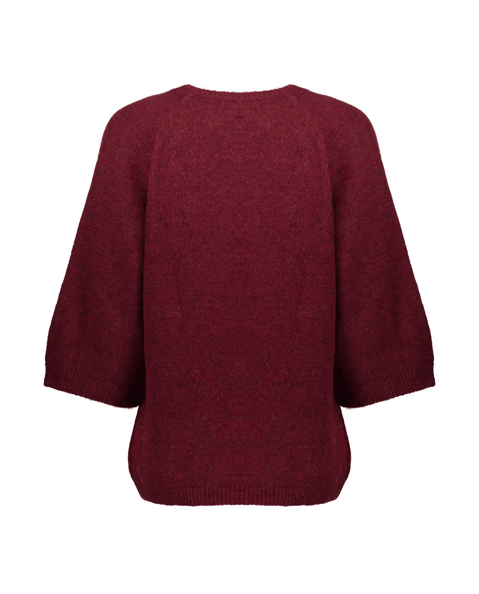 De diepe kleur en losse mouw maken deze trui net even anders. Combineert moeiteloos met jeans, rok of pantalon.