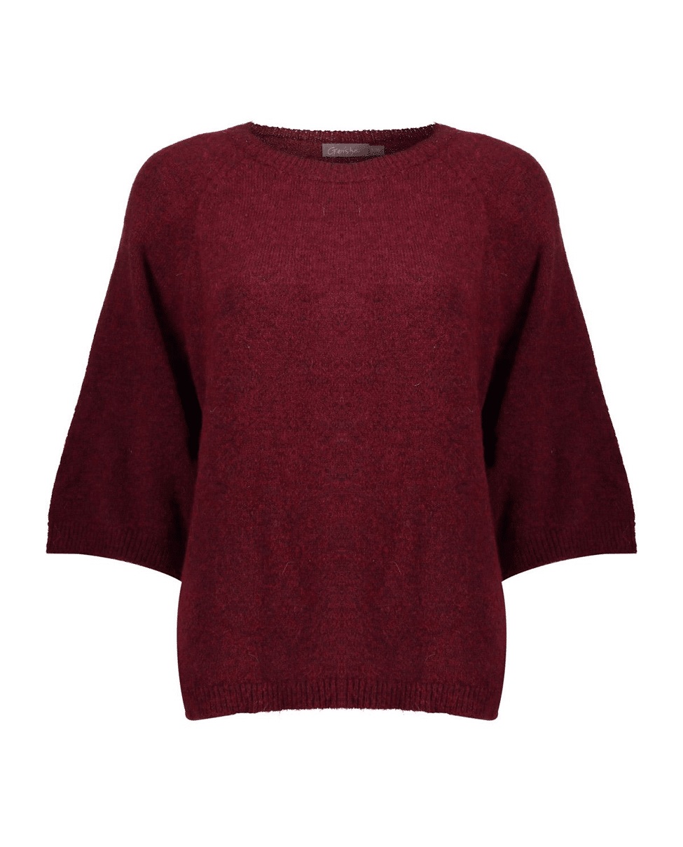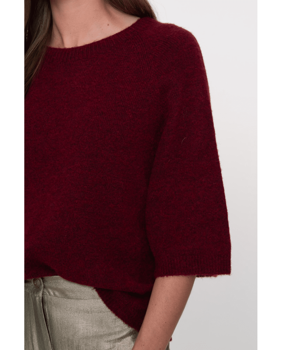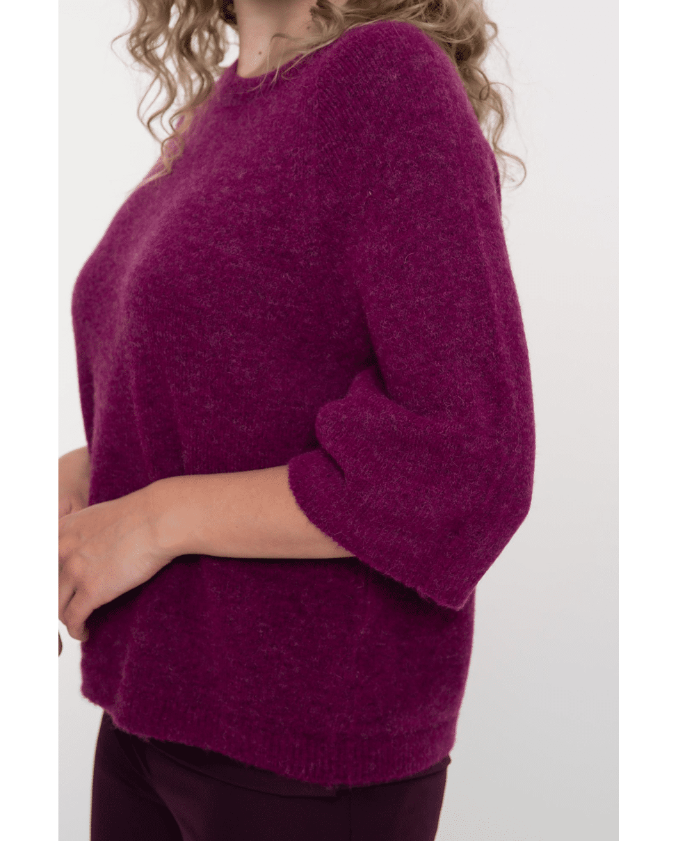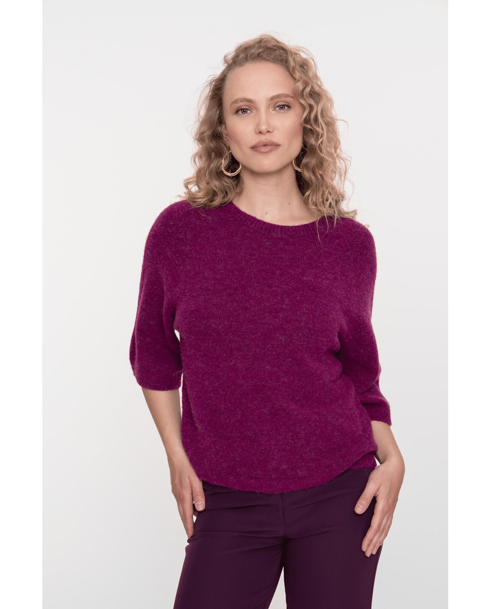 De diepe kleur en losse mouw maken deze trui net even anders. Combineert moeiteloos met jeans, rok of pantalon.