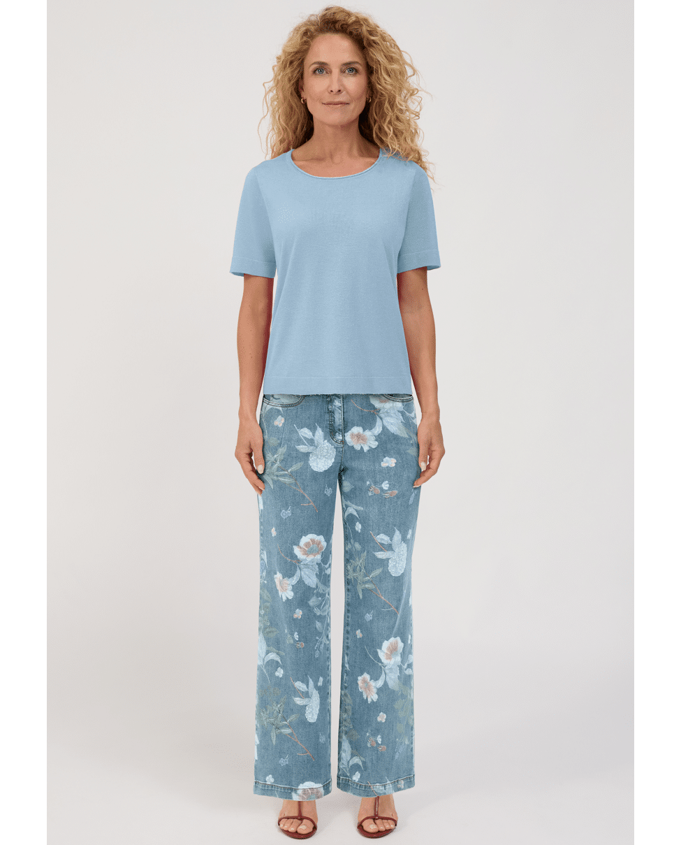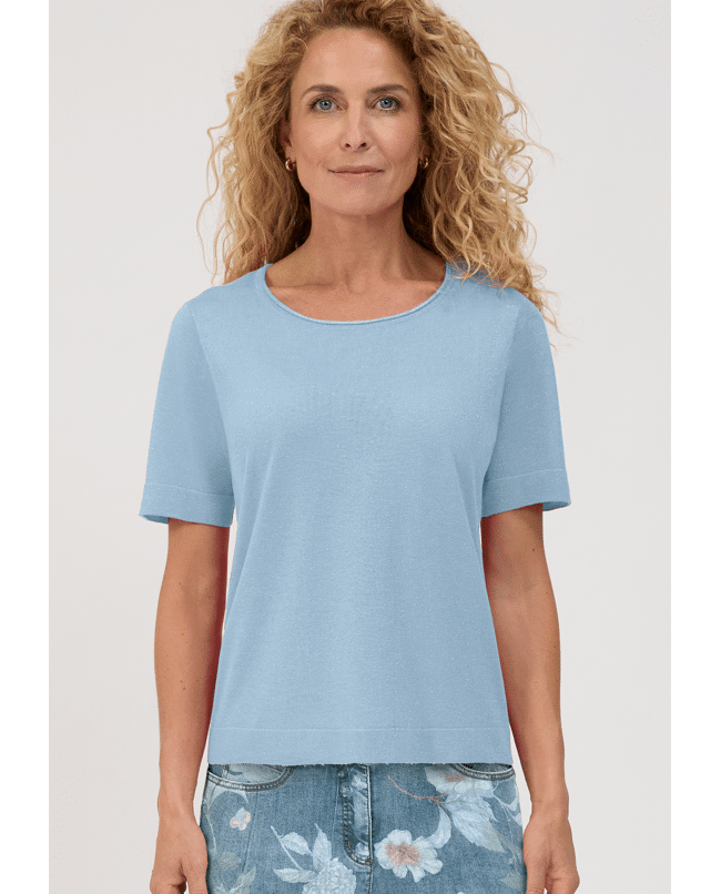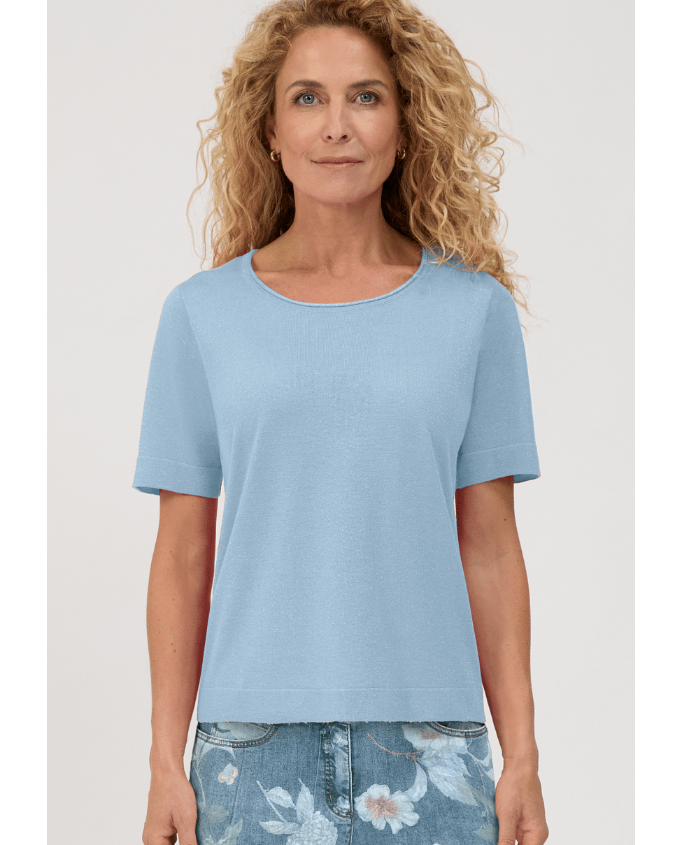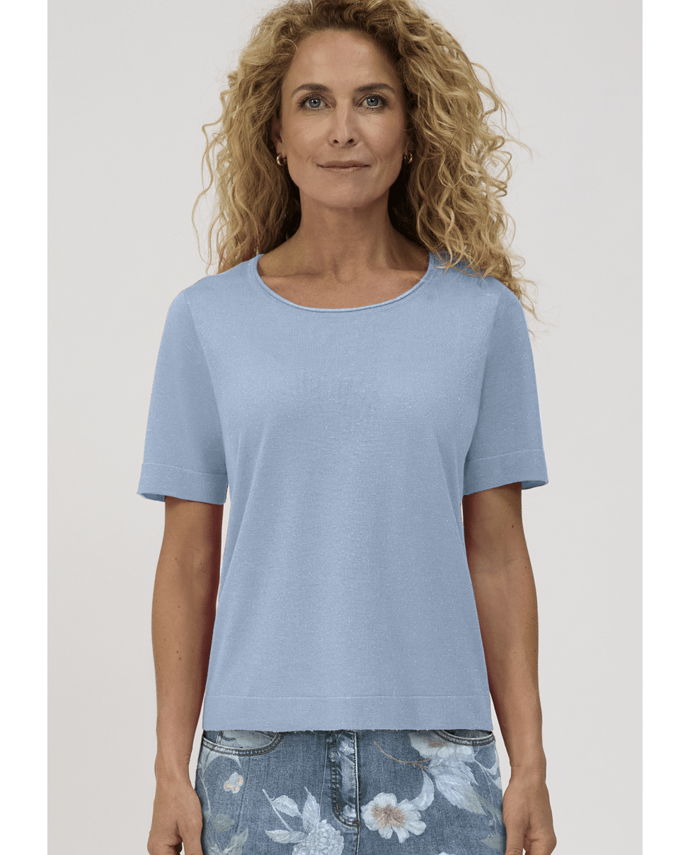De lichte shimmer in de stof geeft deze basic een elegante twist – makkelijk te stylen met jeans of een nette rok.