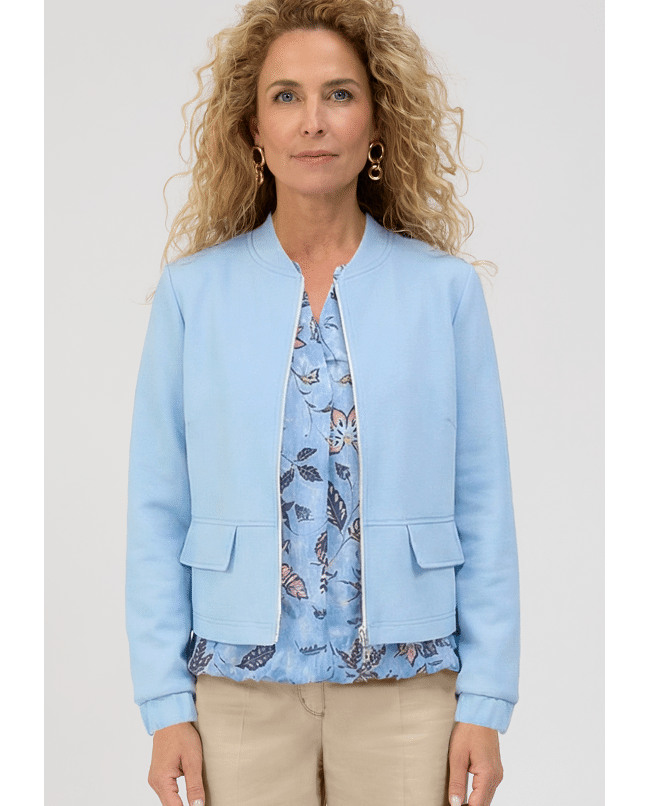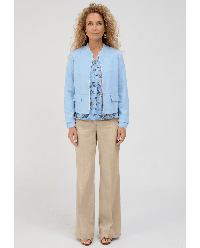 Deze lichtblauwe bomberjas van Bianca is een frisse toevoeging aan je voorjaarsgarderobe. Ideaal voor een casual-chique look met een vrouwelijke twist.