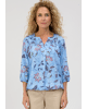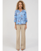 Deze lichtblauwe blouse van 100% viscose brengt kleur én comfort in je garderobe. De speelse botanische print maakt 'm perfect voor zonnige dagen, terwijl de lichte stof soepel met je meebeweegt.
