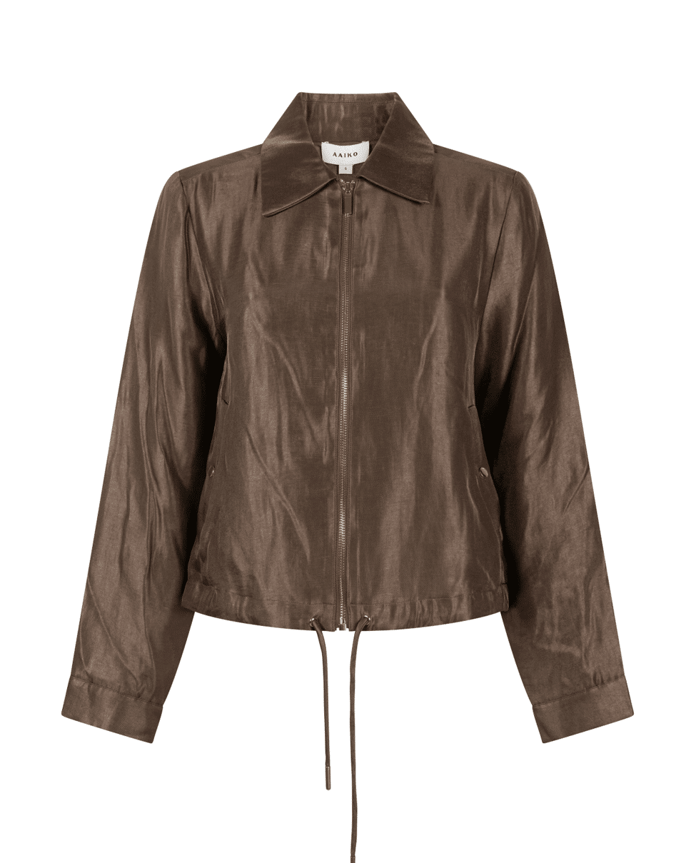 Het Ravi jasje van Aaiko is stijlvol en subtiel glanzend, ideaal voor een chique herfstlook. De rechte snit met trekkoord in de zoom maakt dit jasje makkelijk te stylen – casual of wat gekleder. Als set te dragen met rok Varyas.