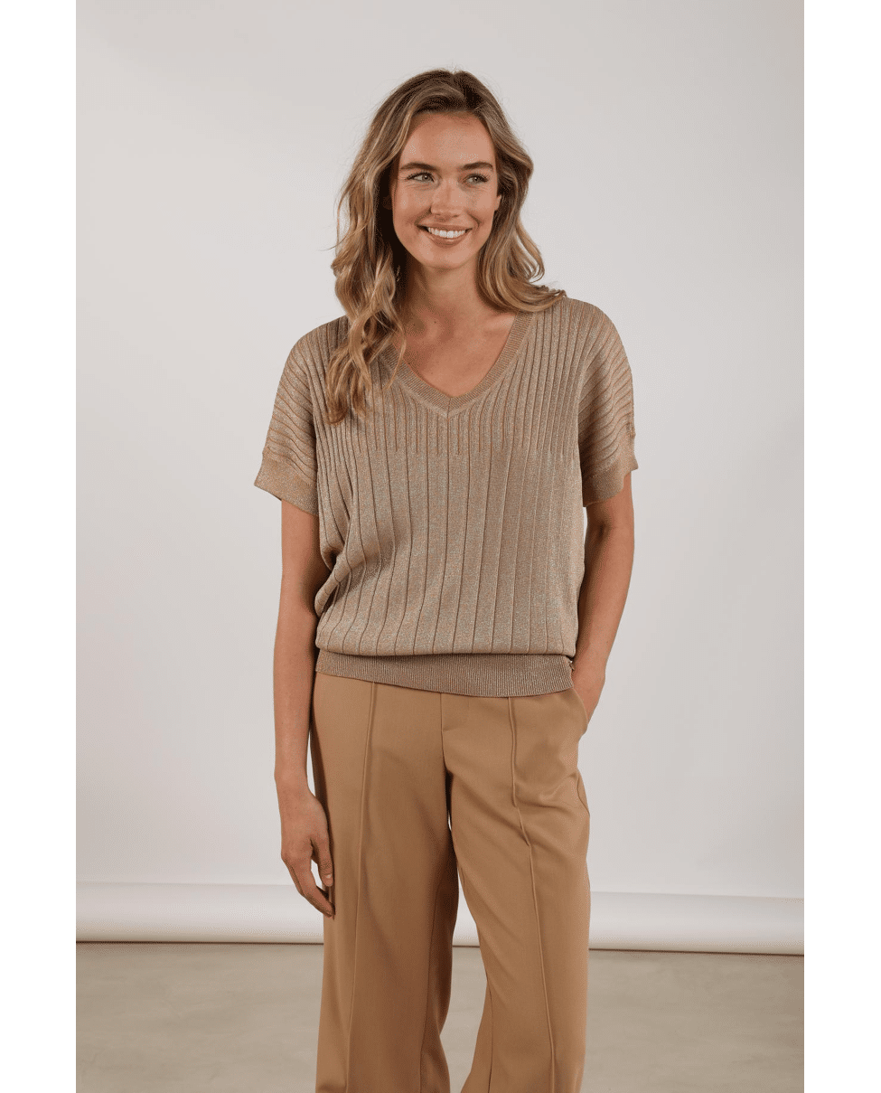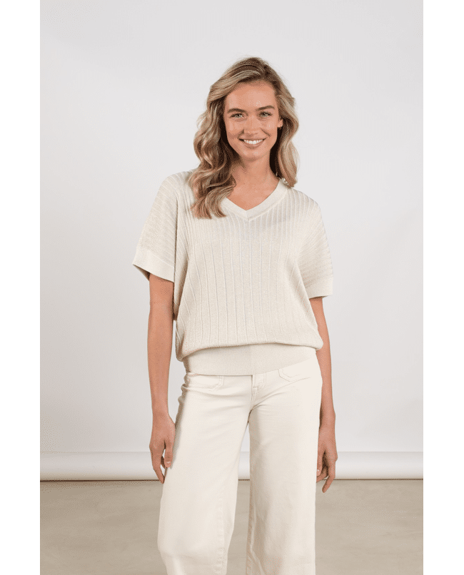 Raya Top Lurex – Gebreide trui van Nukus met korte mouwen