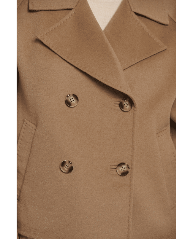 • Double breasted knoopsluiting en reverskraag