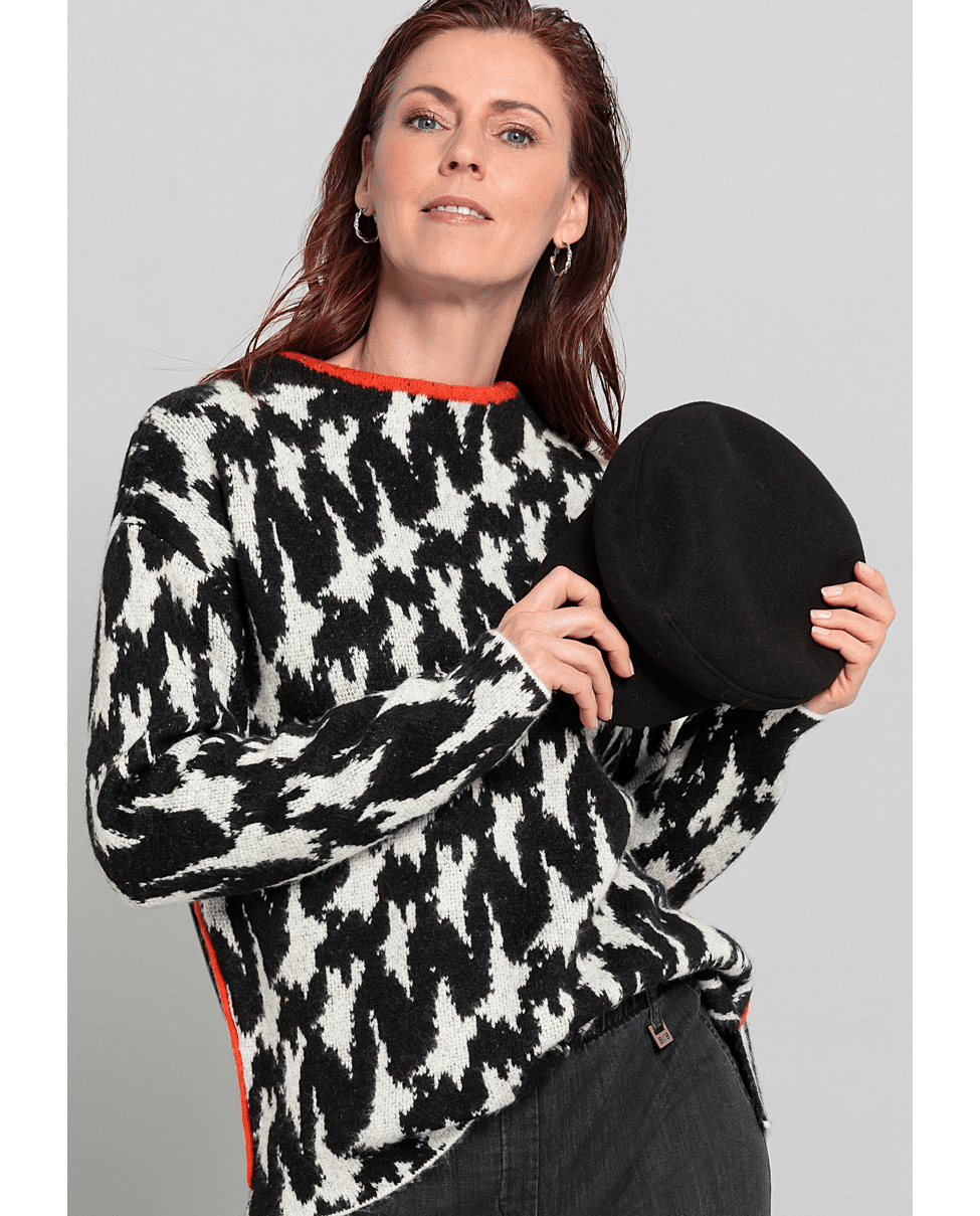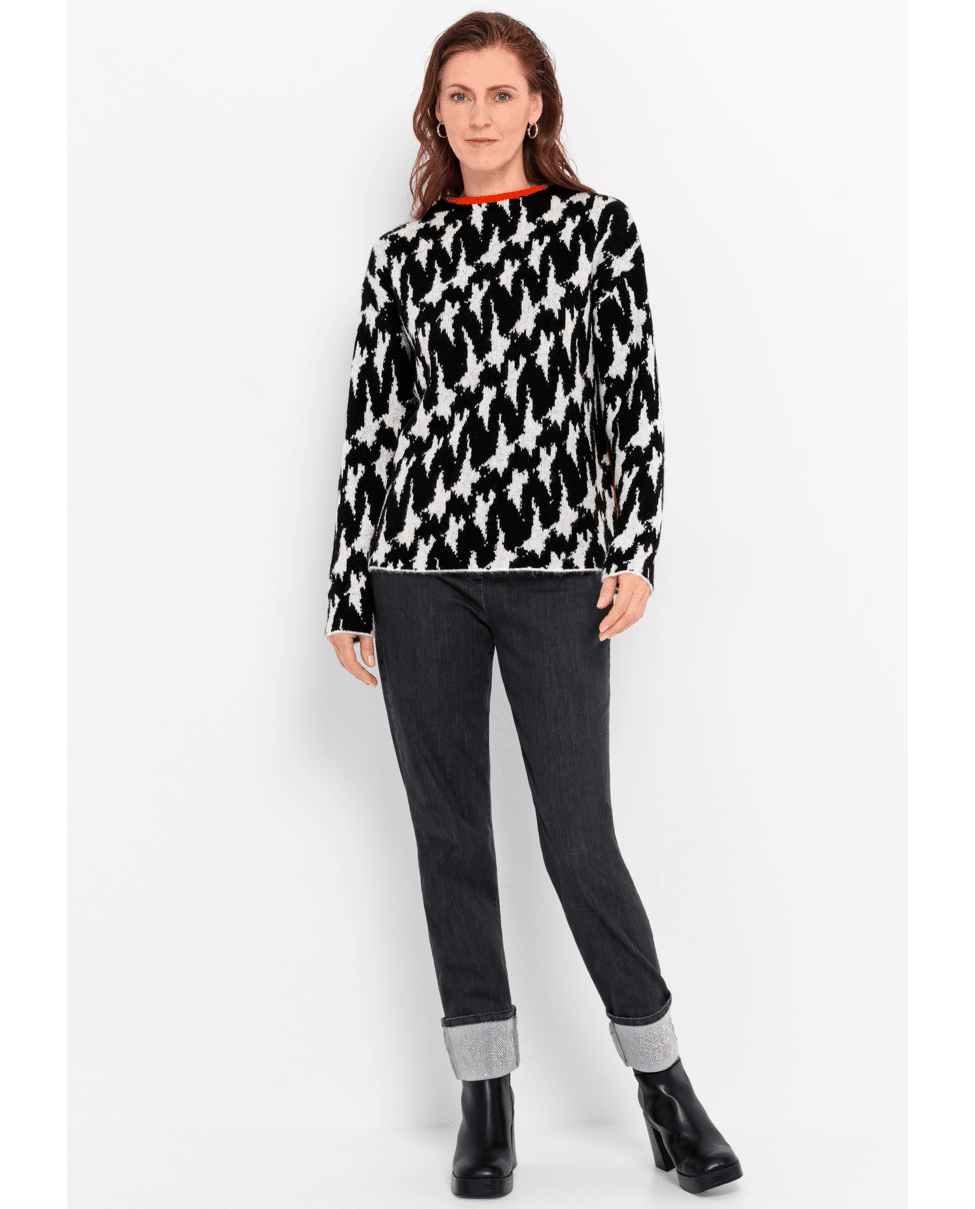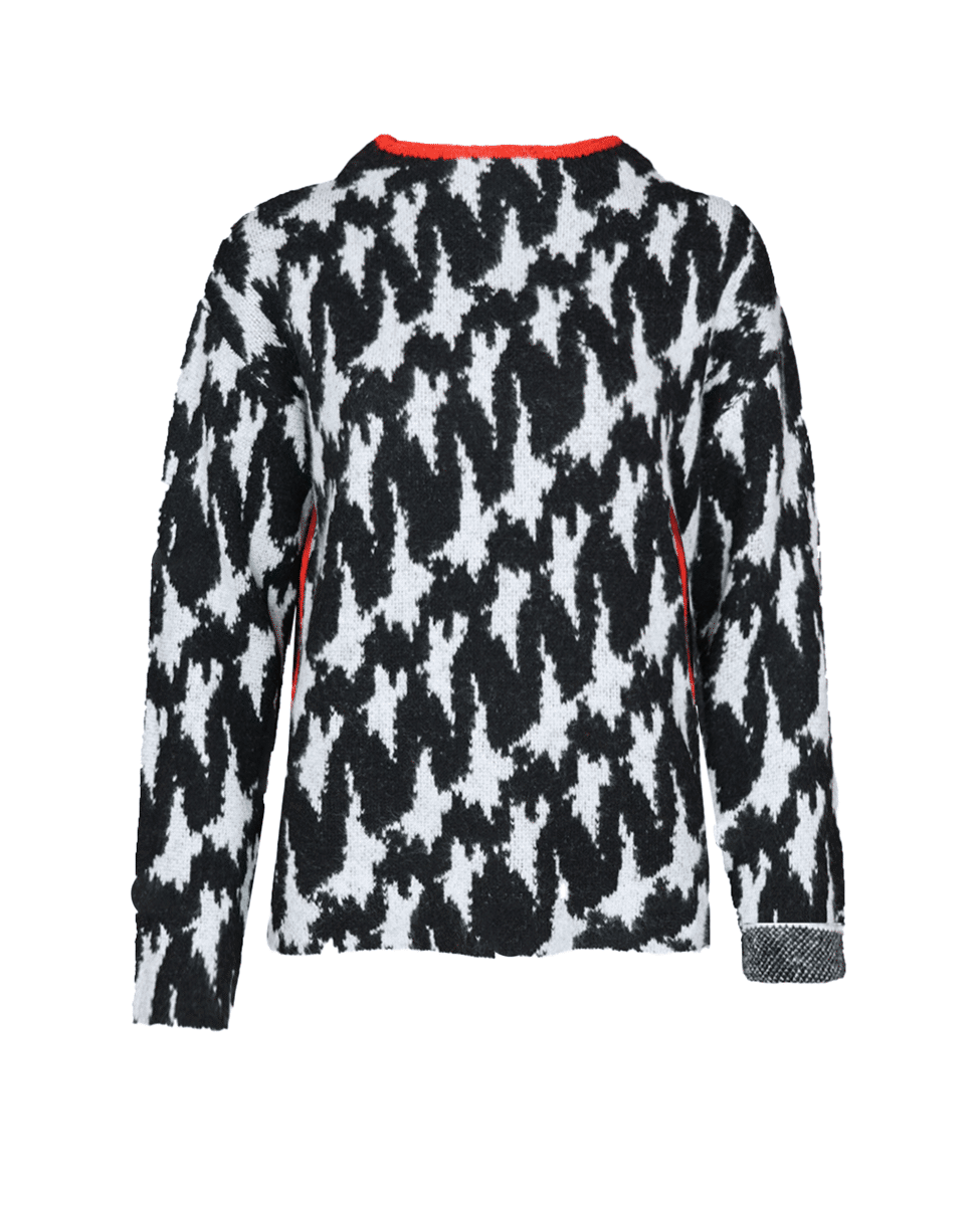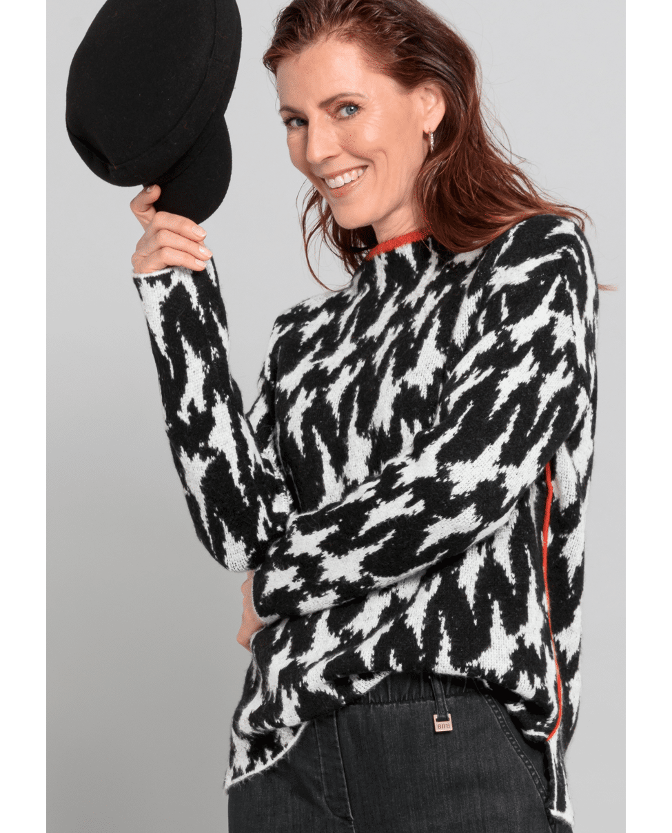 Deze trui met opvallende print is een echte blikvanger voor het najaar. Ideaal om je casual outfit net dat beetje extra te geven.