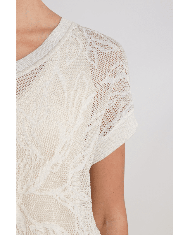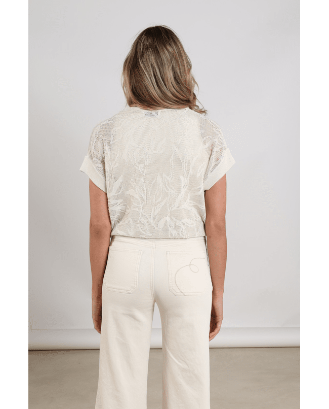 Renza Top – Top van Nukus met lichte breistructuur met botanisch motief