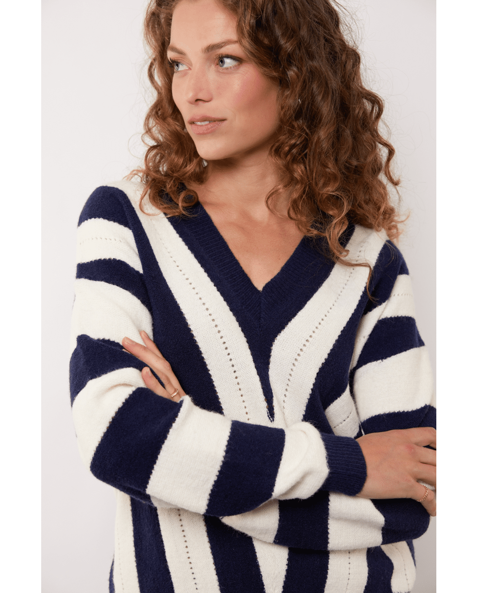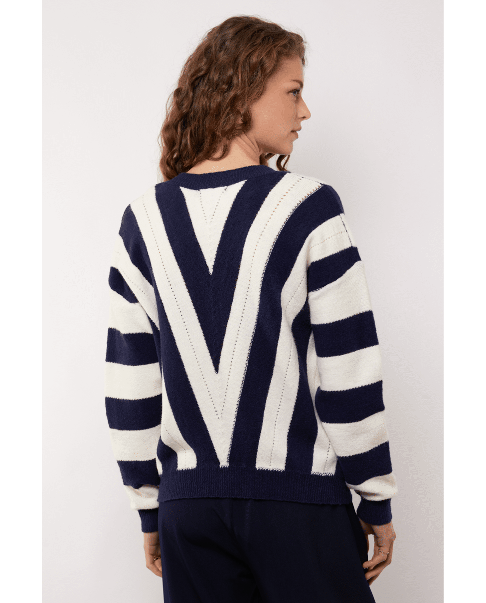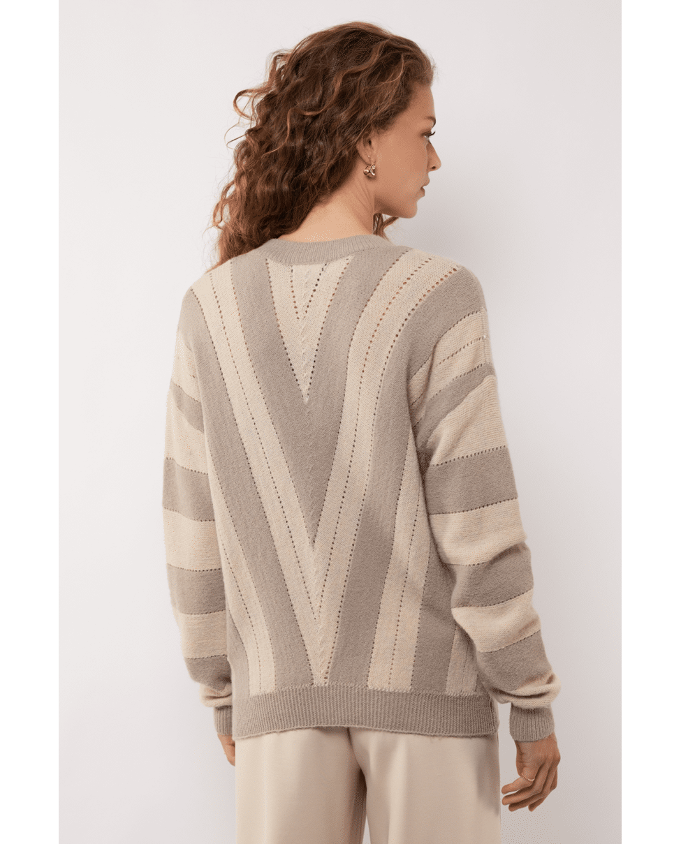 Rikha - Gebreide damestrui van G-maxx met V-patroon, lange mouwen en V-hals