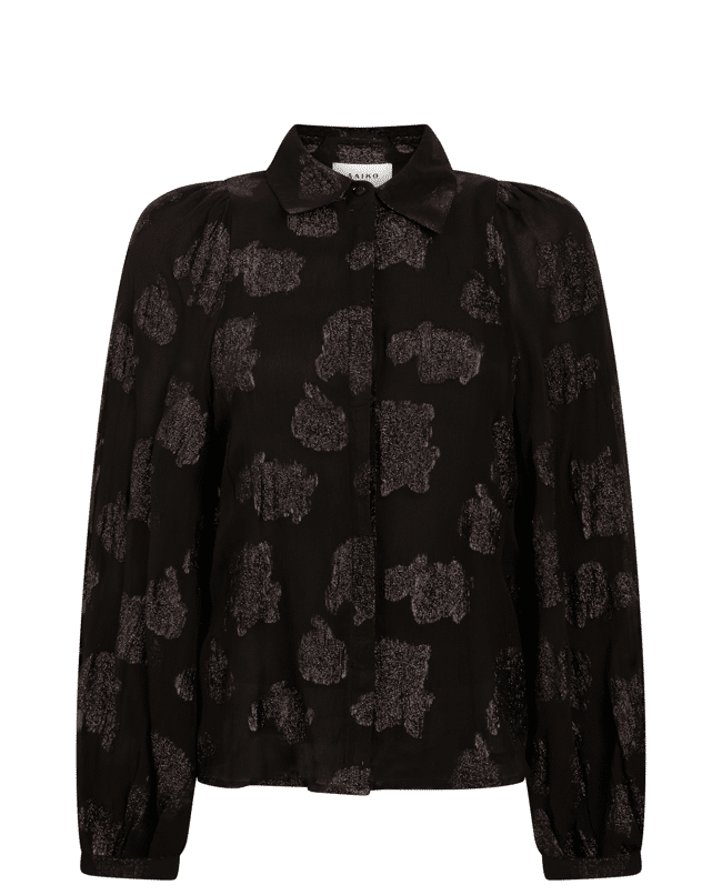 Rose - Damesblouse van Aaiko met glitter dessin, overhemdkraag en lange pofmouwen met manchetten