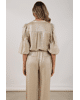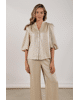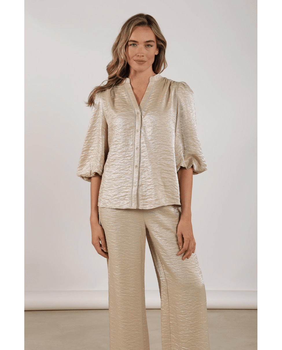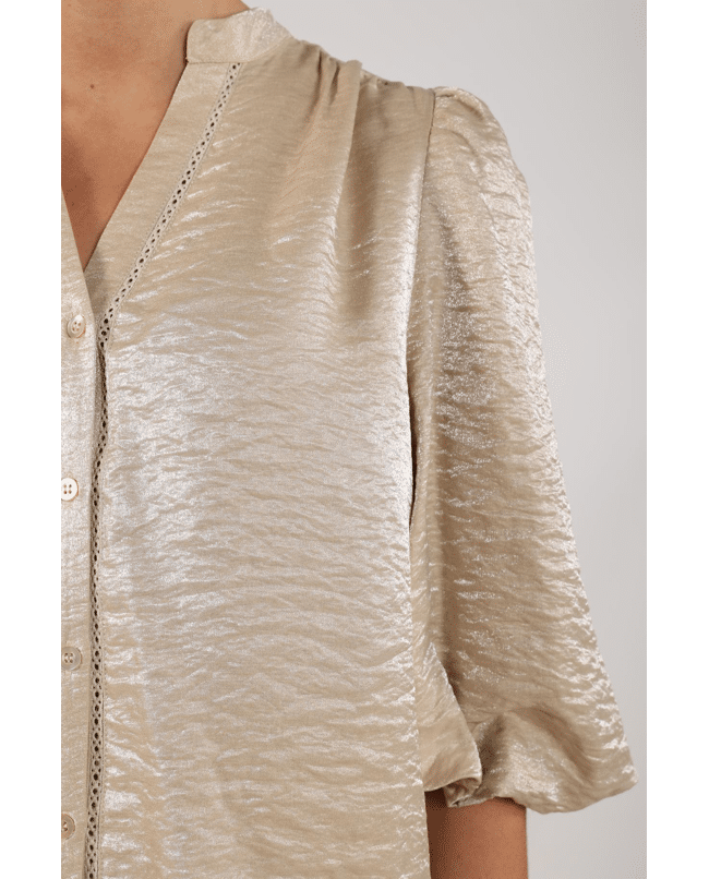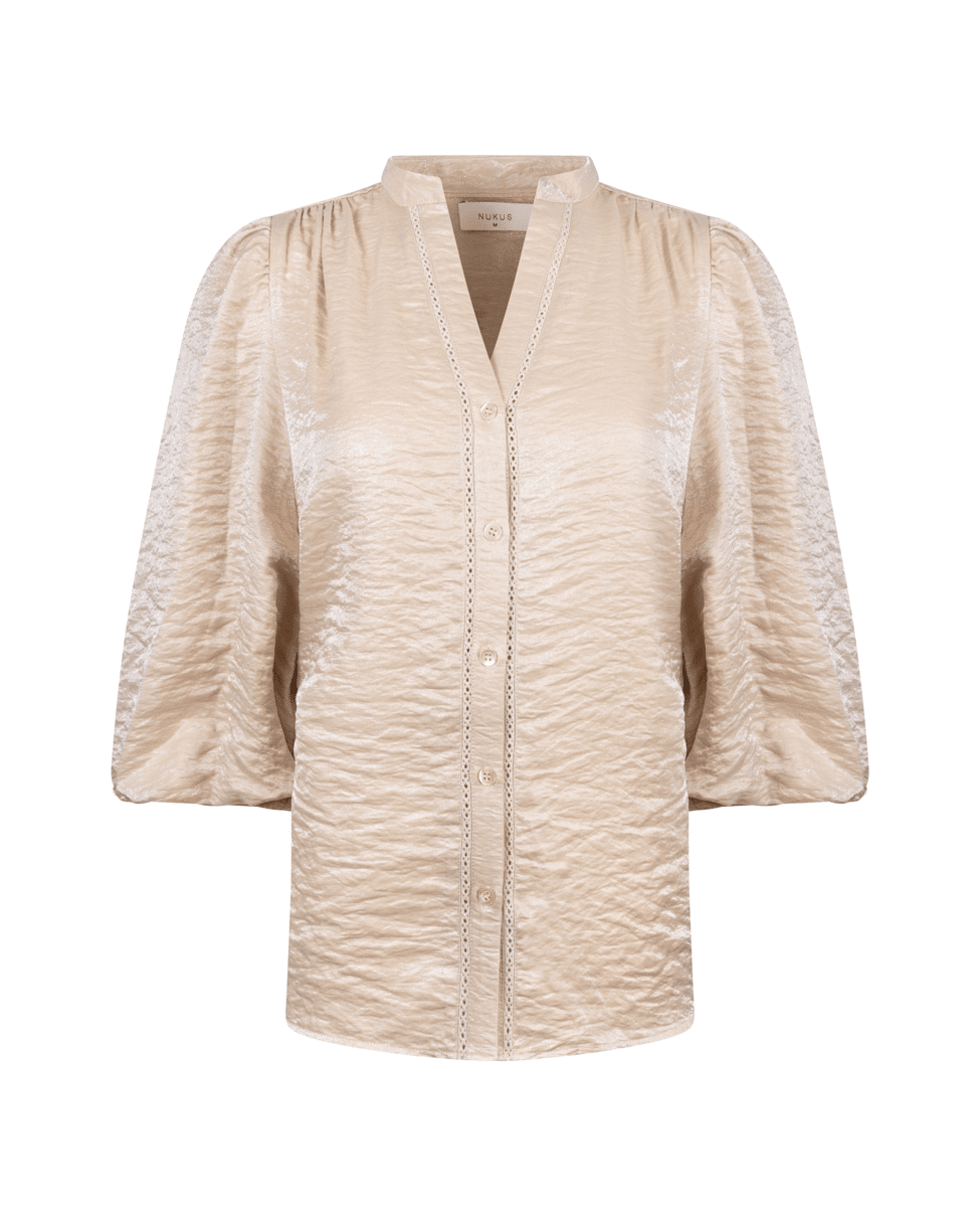 Rosie Blouse Shiny - Damesblouse van Nukus met subtiele glans, V-hals, knoopsluiting en 3/4 pofmouwen