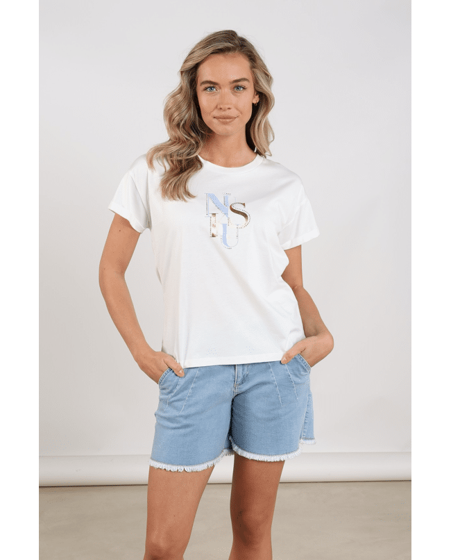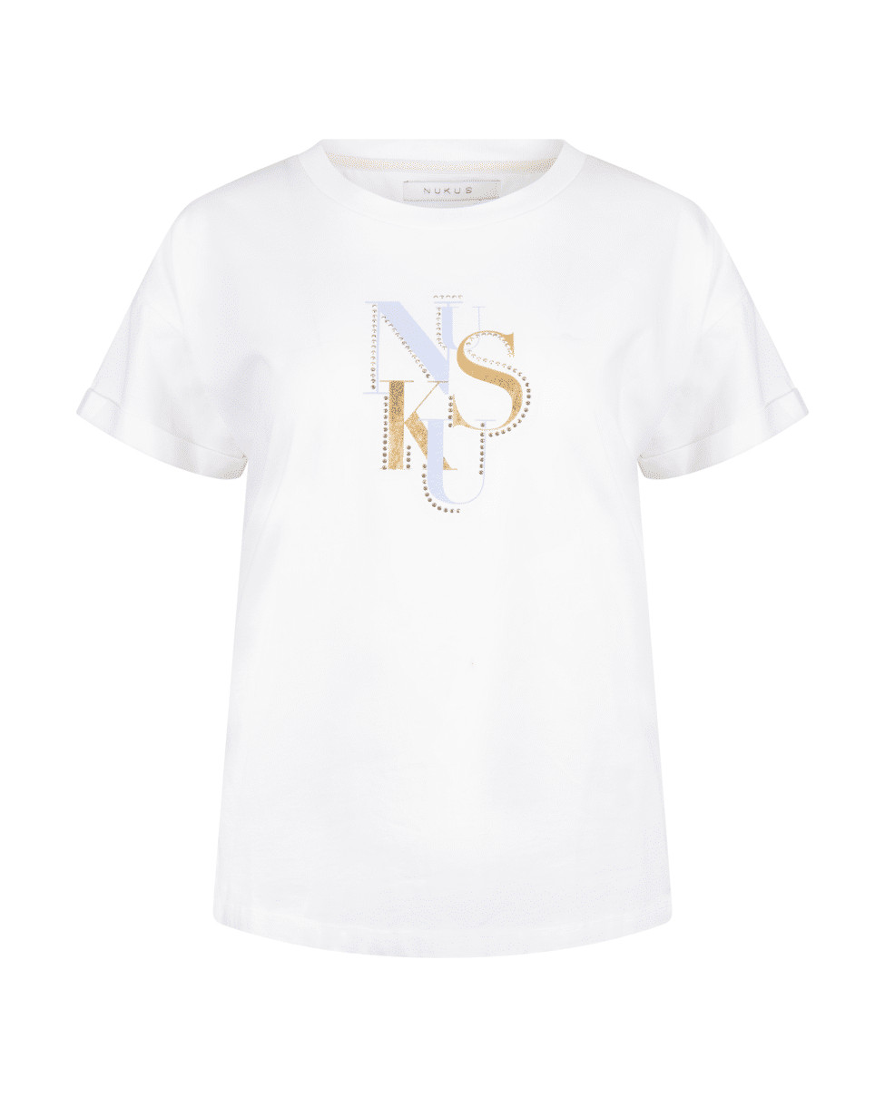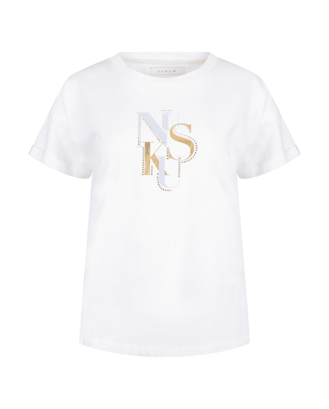 De combinatie van metallic accenten en het NUKUS-logo maakt dit shirt net even anders – basic met een twist.