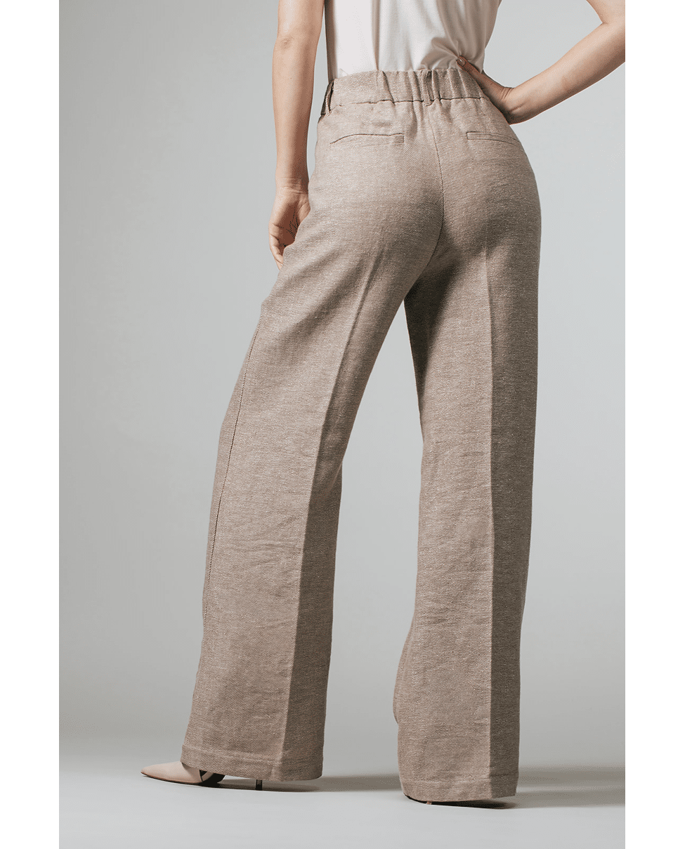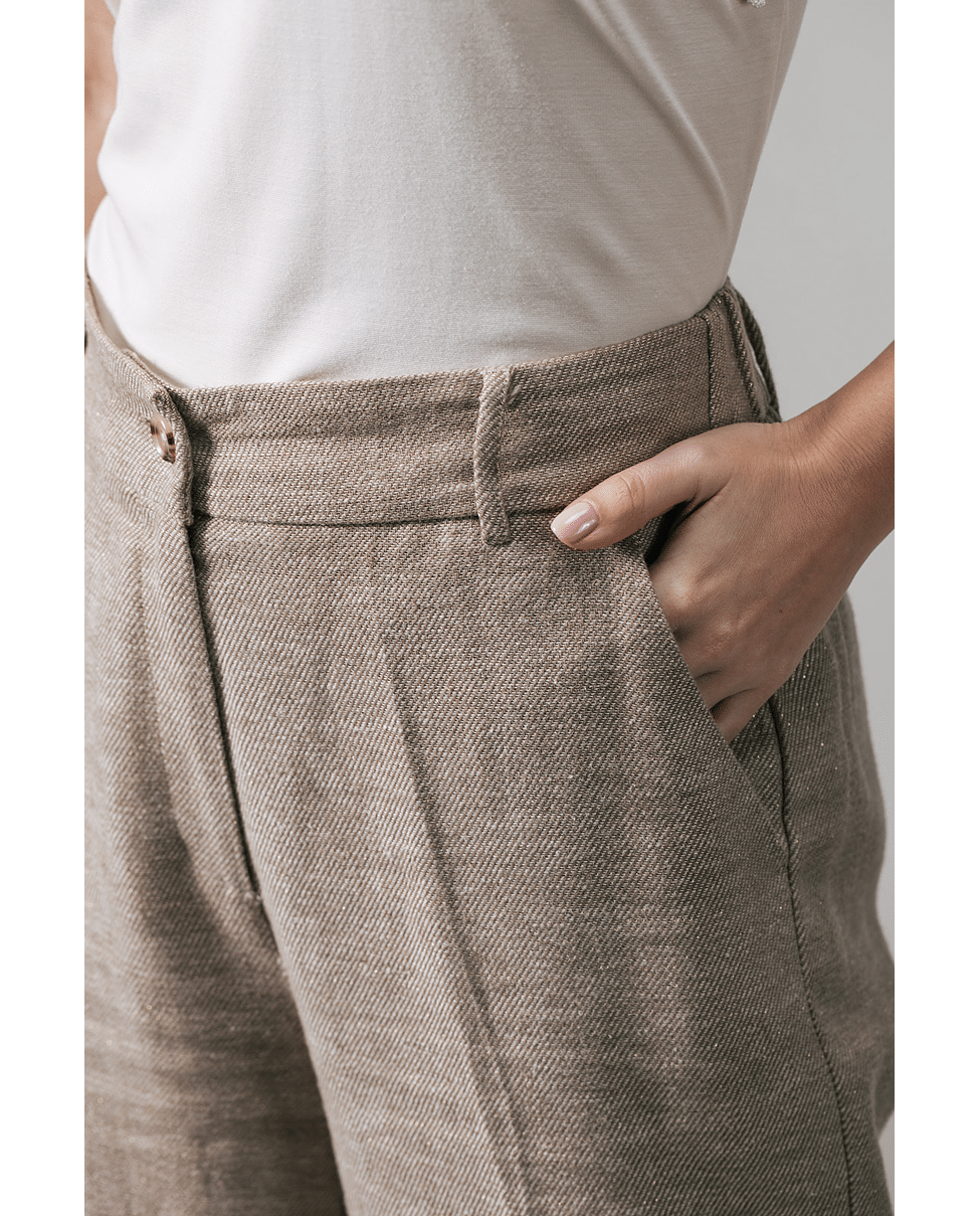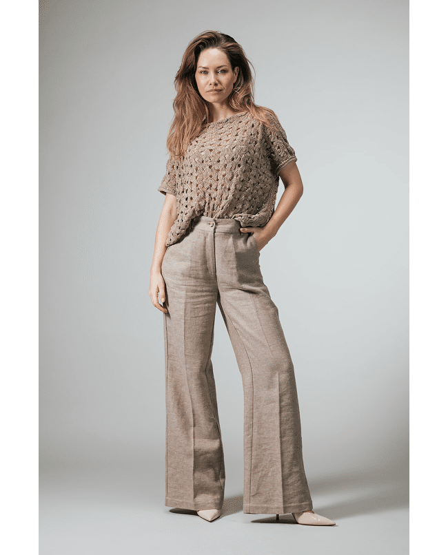 Glamour in een comfortabele uitvoering. Pantalon Roxanne is gemaakt van keperstof met een subtiele gouden glans – perfect voor zomerse dagen met stijl.