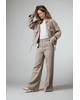 De elastische taille en bandplooien zorgen voor een relaxte fit, terwijl het glansgaren een vleugje luxe toevoegt. Mooi met een basic top of als set.