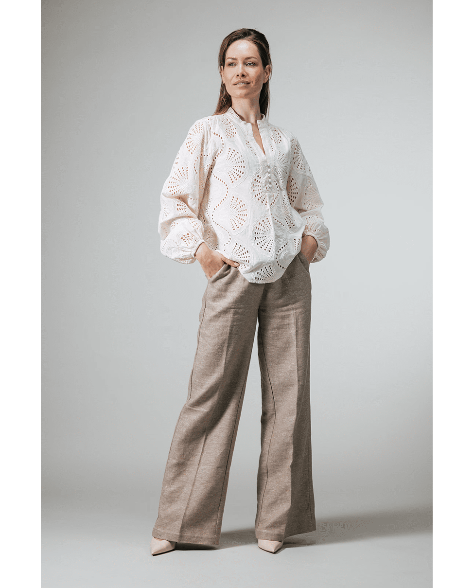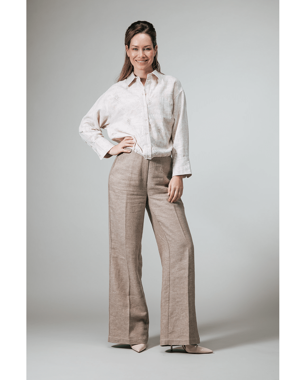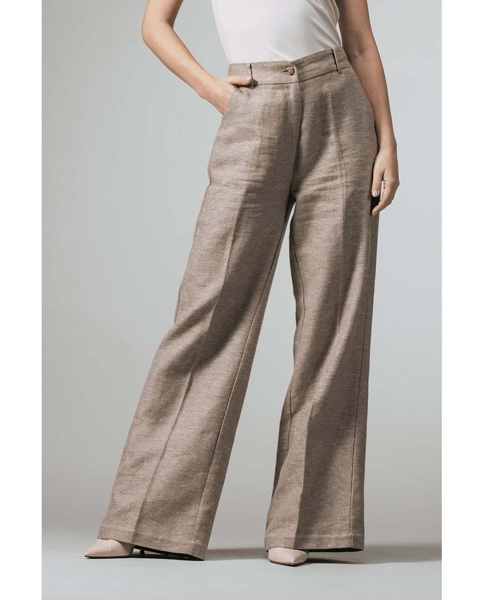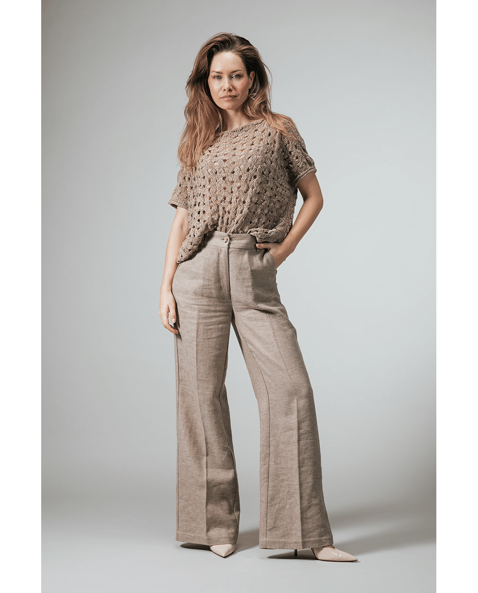 Wijde pijpen met een hoge taille en soepel vallende fit.