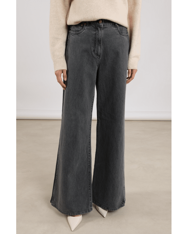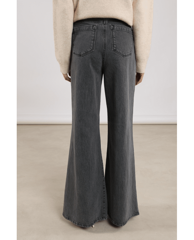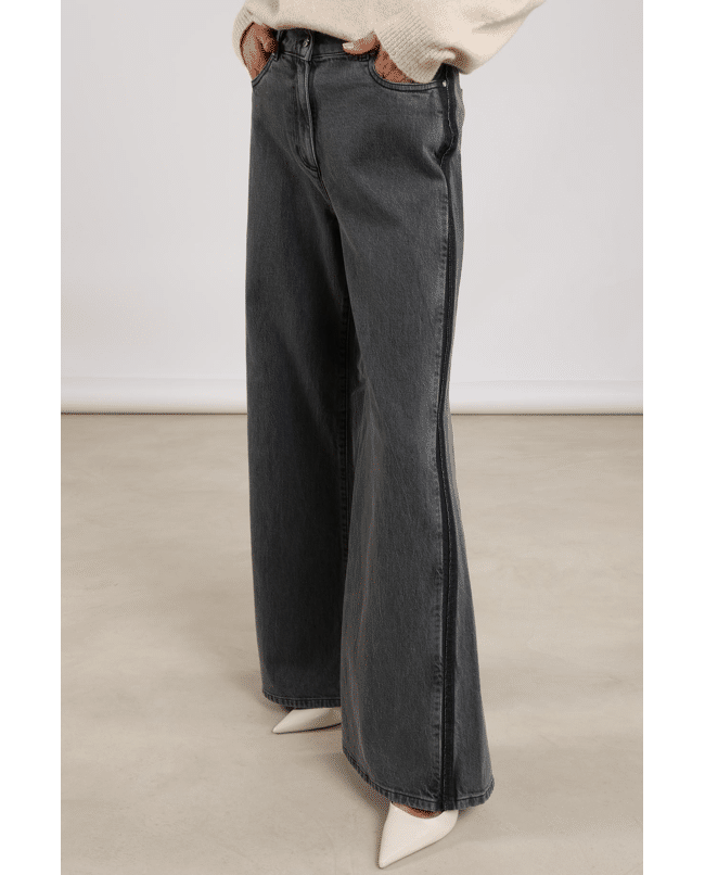 De combinatie van een klassieke wide leg en opvallende accenten maakt deze jeans een echte eyecatcher. Mooi te dragen met knitwear of een feestelijk jasje.