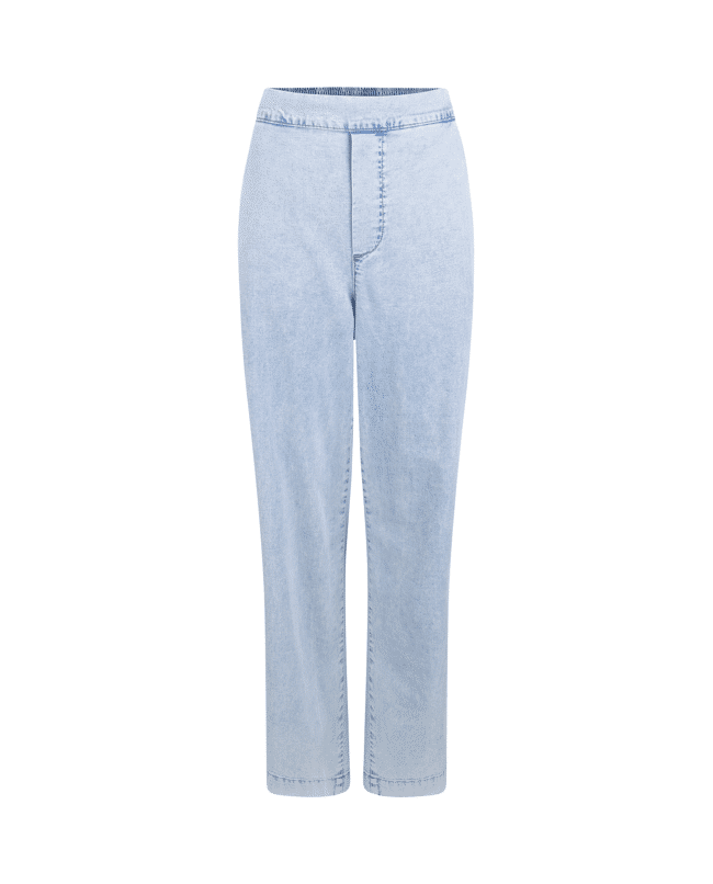 De elastische tailleband aan de achterkant zorgt voor een fijne pasvorm. De lichte wassing geeft deze broek een relaxte, zomerse uitstraling.