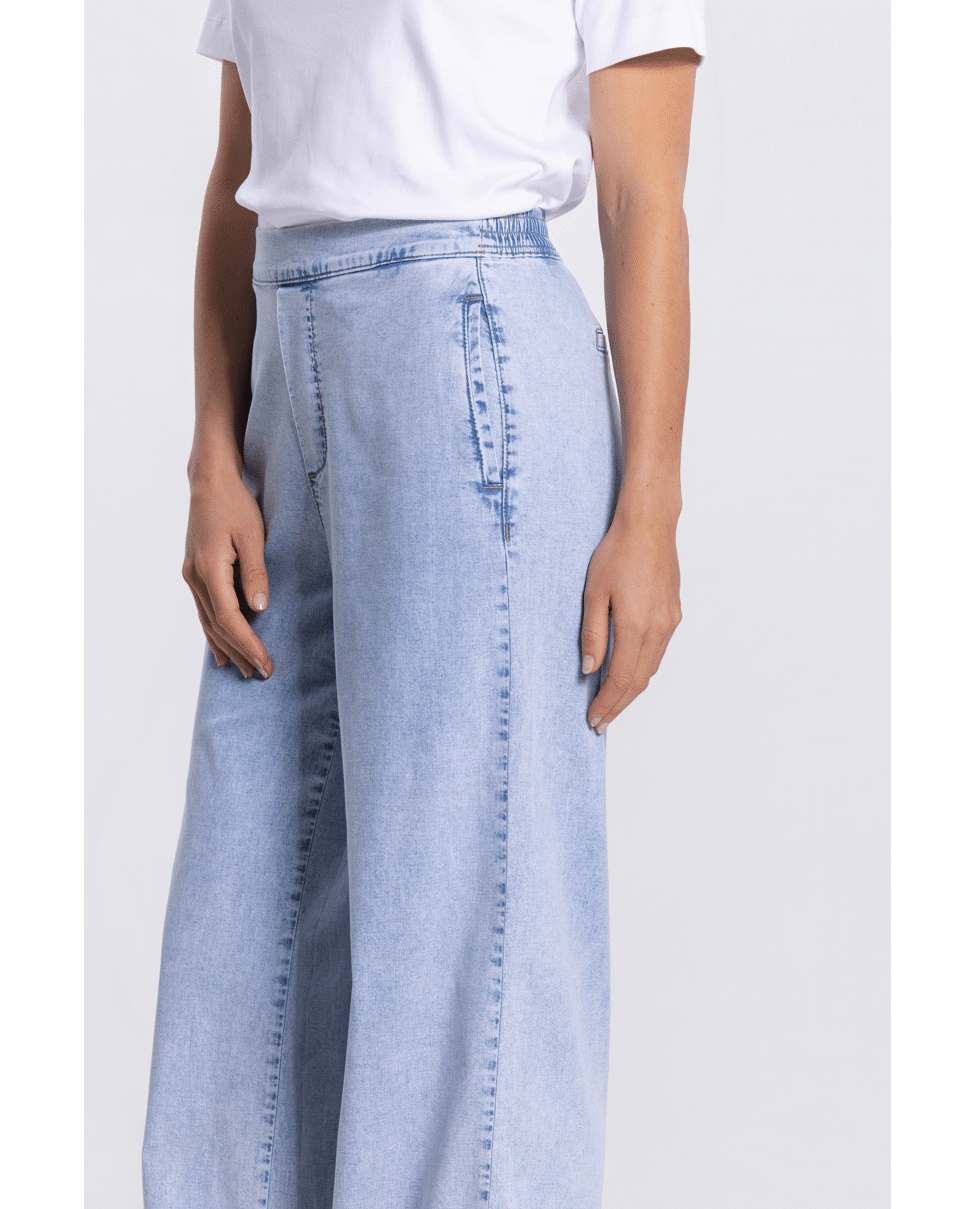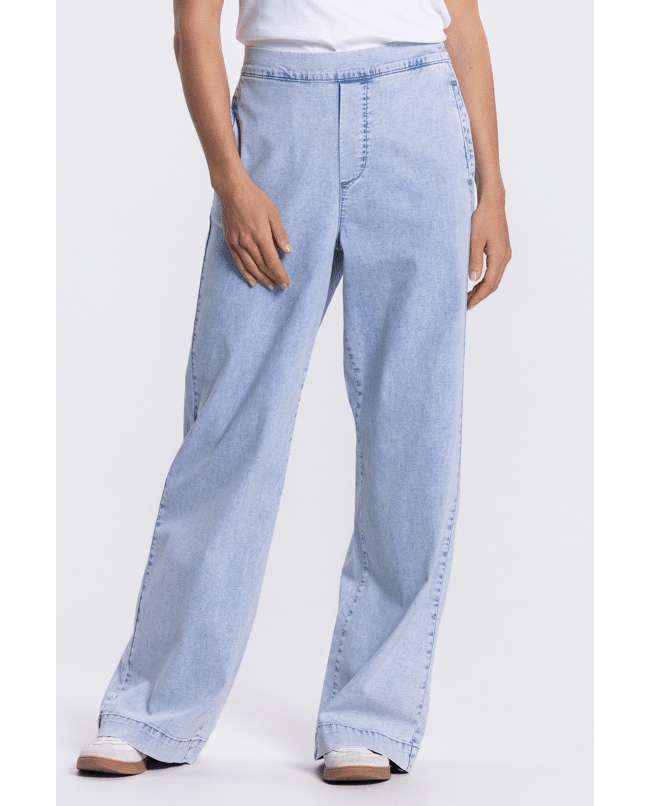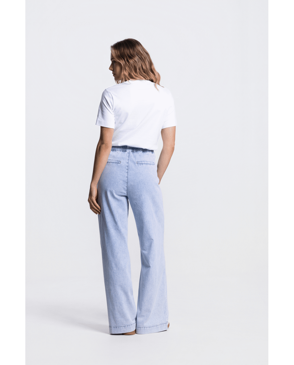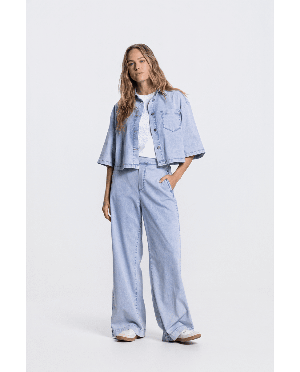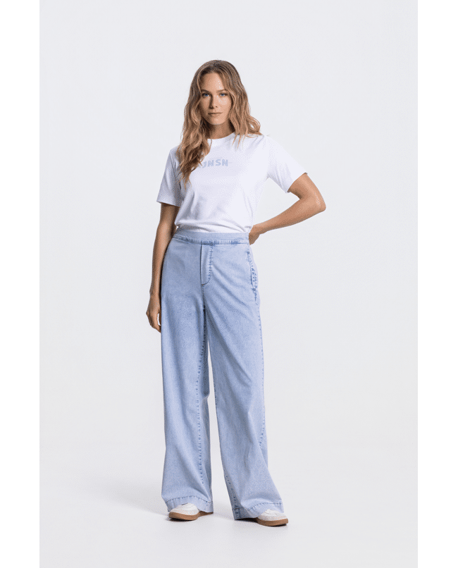 De SAAR SS26 is een lichtblauwe jeans van JANSEN Amsterdam met een high-waist en wijde pijpen. Gemaakt van een zachte stretchdenim die soepel met je meebeweegt.