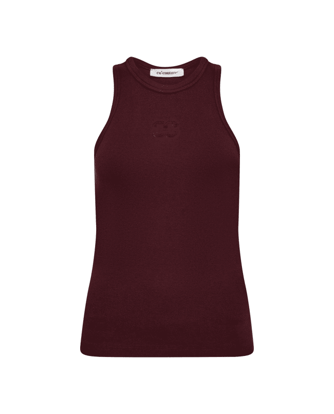 SaharaCC Emboidery – Dames tanktop van co’couture met geborduurd logo, fijne rib en slanke pasvorm