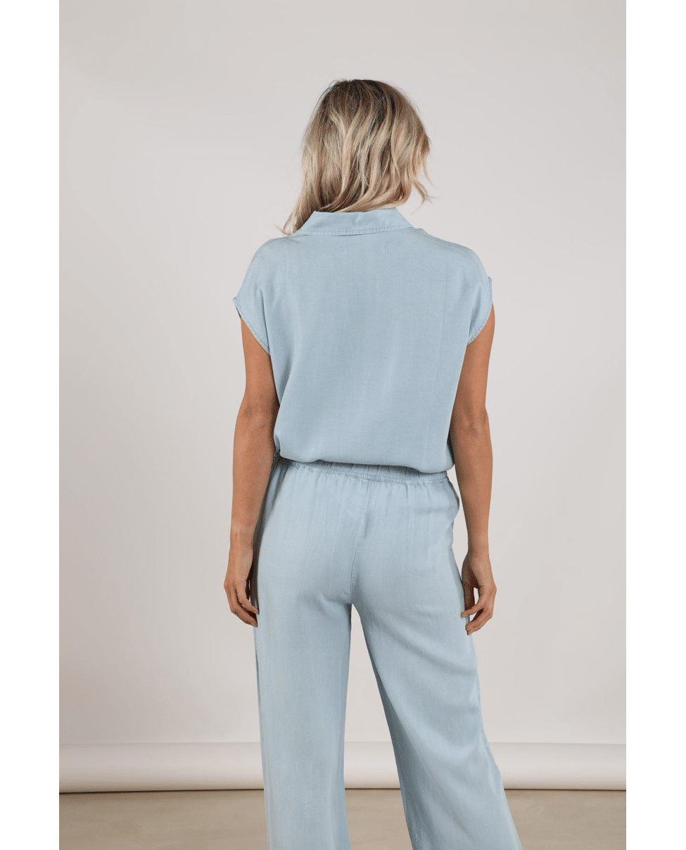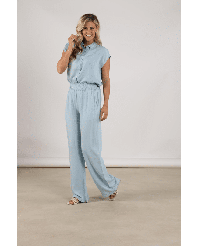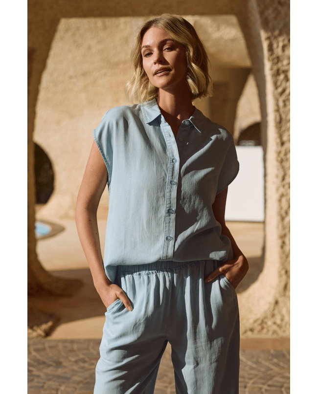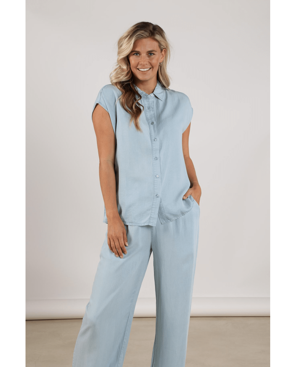 De zachte, denimlook tint in combinatie met de vloeiende stof geeft deze top een moderne en moeiteloos chique uitstraling. Perfect als set met de Novi Pants.