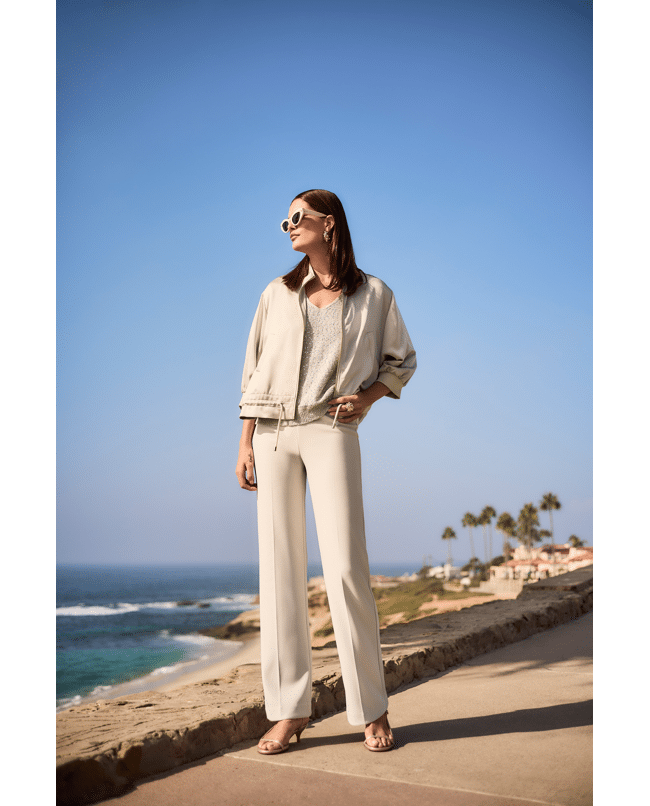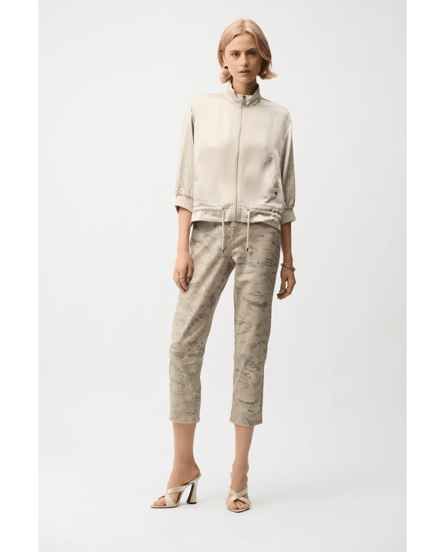 Dit satijnen jasje van Joseph Ribkoff heeft een moderne, elegante uitstraling met een sportieve twist. De zachte glans van de stof en de boxy pasvorm zorgen voor een stijlvolle en eigentijdse look.