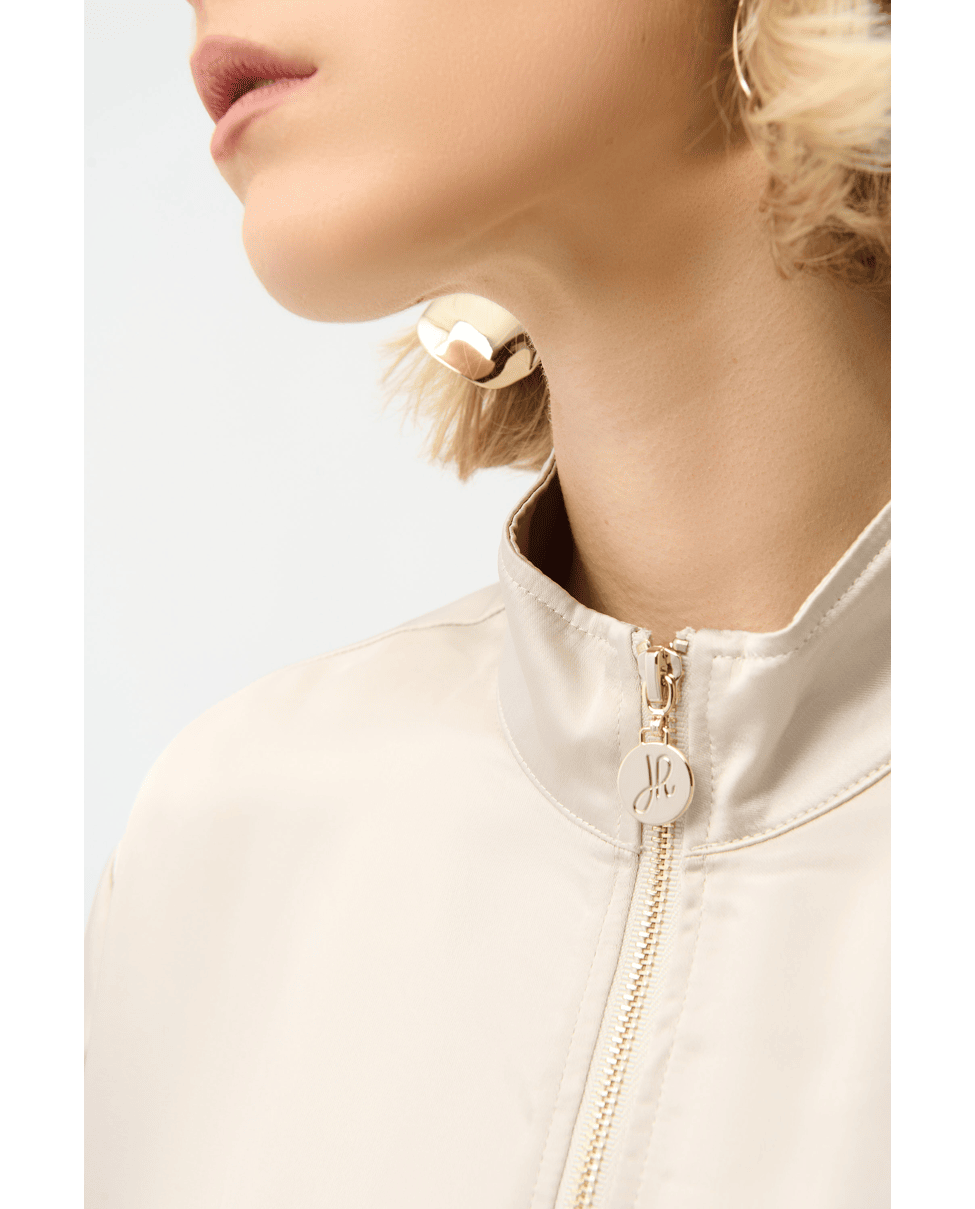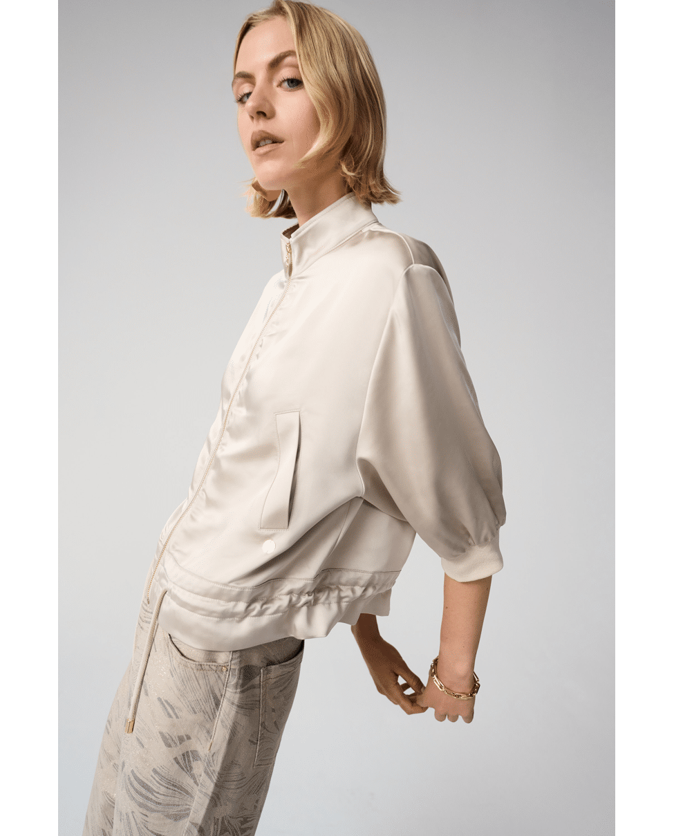 De combinatie van een luxe satijnen stof met een casual blouson model maakt dit jasje perfect voor zowel een nette als een meer ontspannen outfit. Mooi te combineren met een pantalon, jeans of over een jurk.