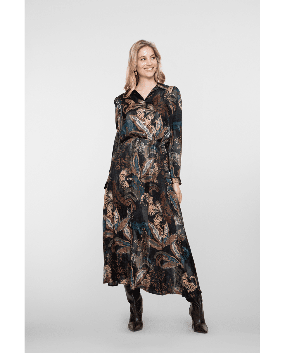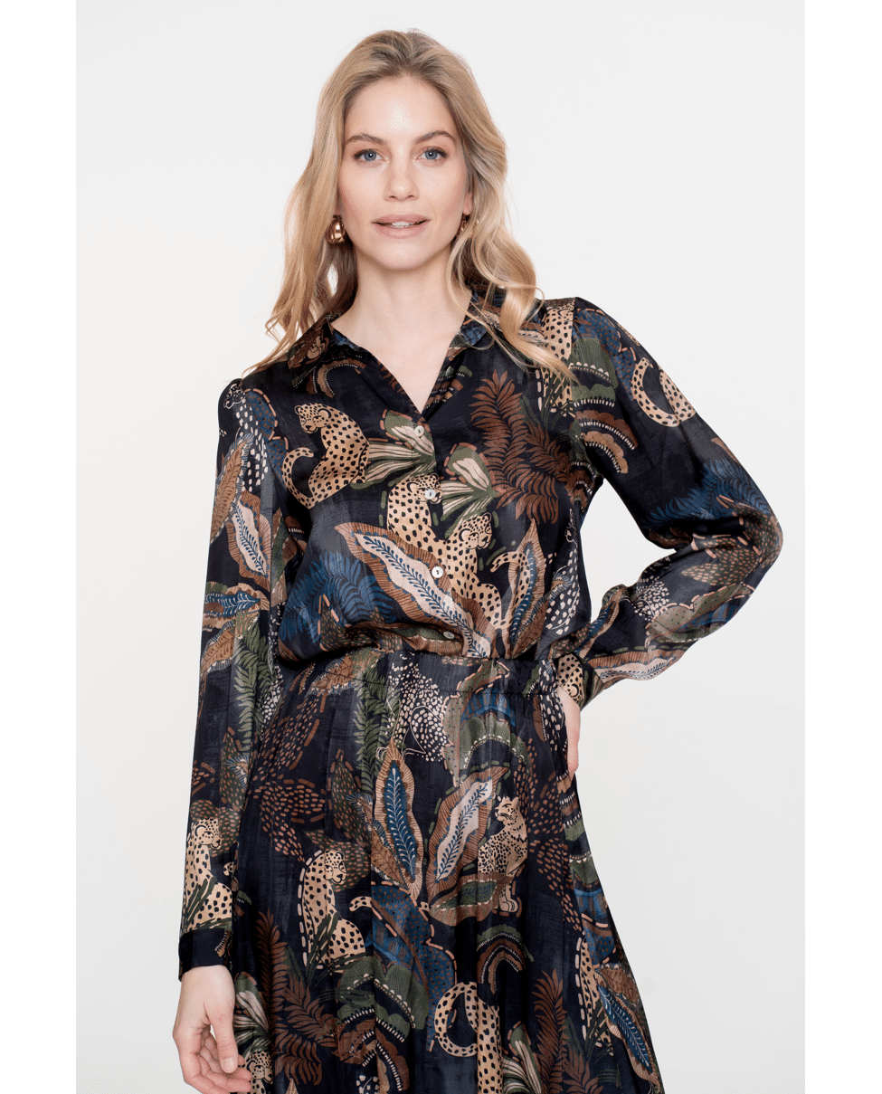 Een elegante satijnen blouse met all-over animalprint. De soepele viscose en rijke kleurencombinatie maken dit een stijlvolle keuze voor het najaar. Ideaal voor zowel werk als casual gelegenheden.