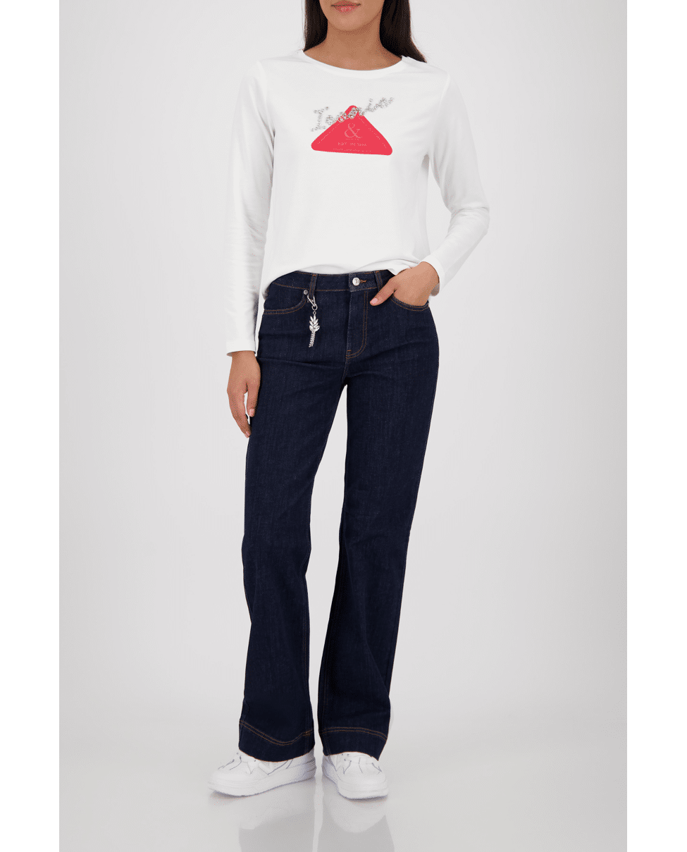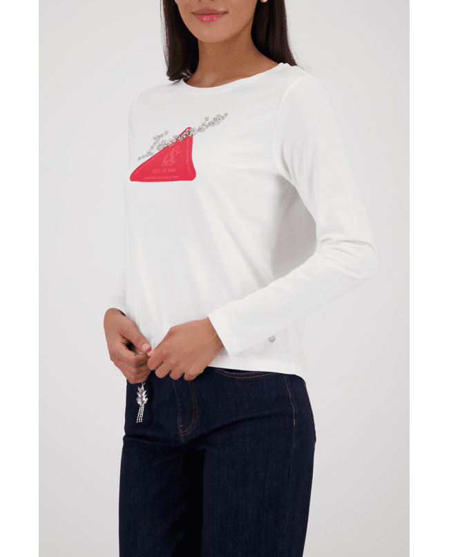 Dames shirt van Monari met embleem en siersteentjes, ronde hals en lange mouwen