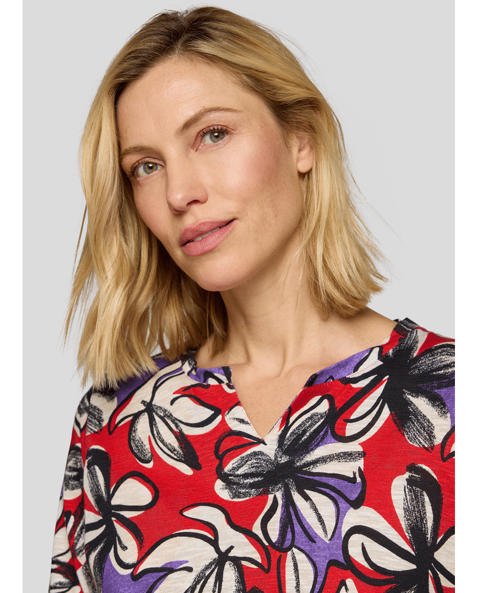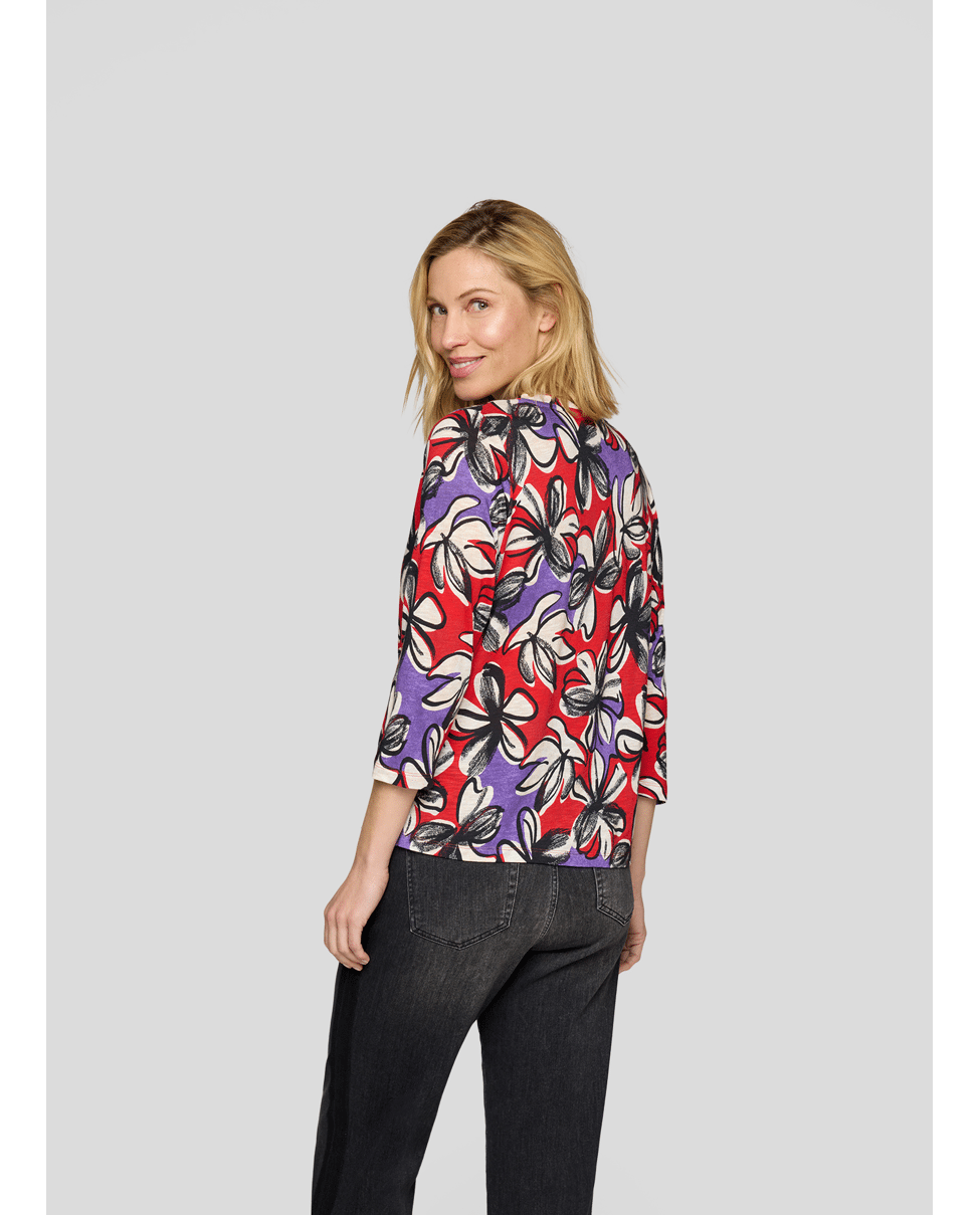 Dames shirt van Rabe met abstracte bloemenprint, ronde hals met V-inkeping en 3/4 mouwen