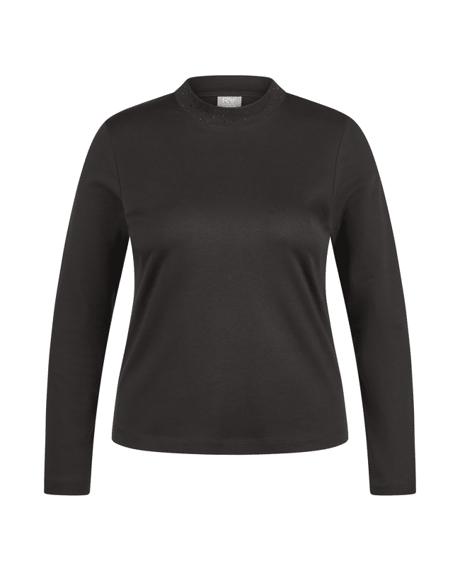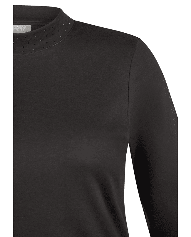 Dit longsleeve shirt is een veelzijdige basic met een chique twist. De subtiele steentjes langs de hals zorgen voor een elegante touch.