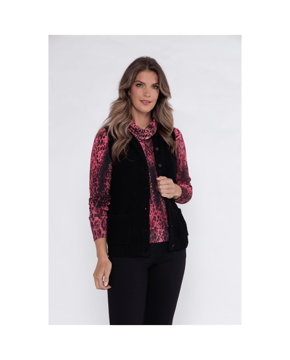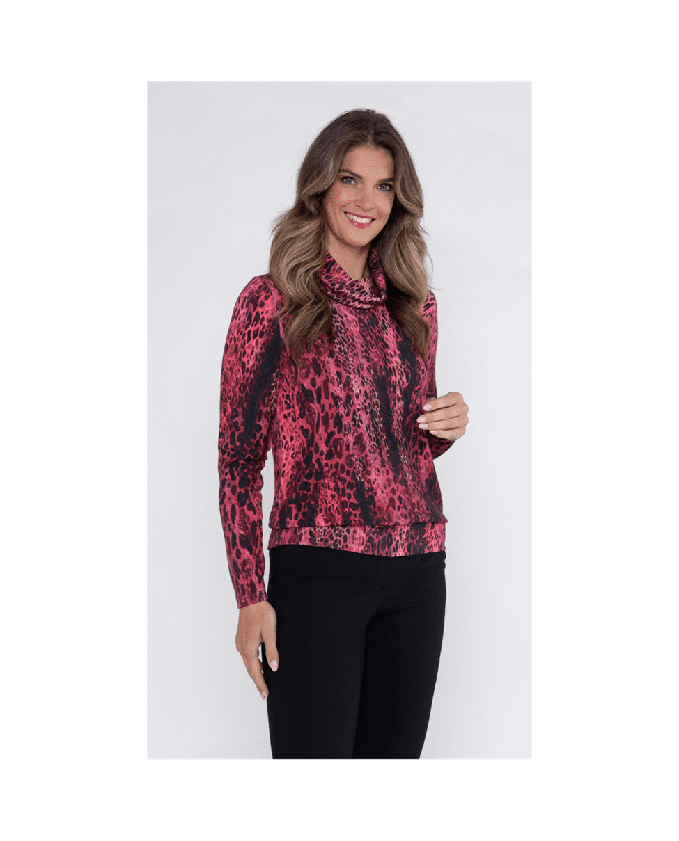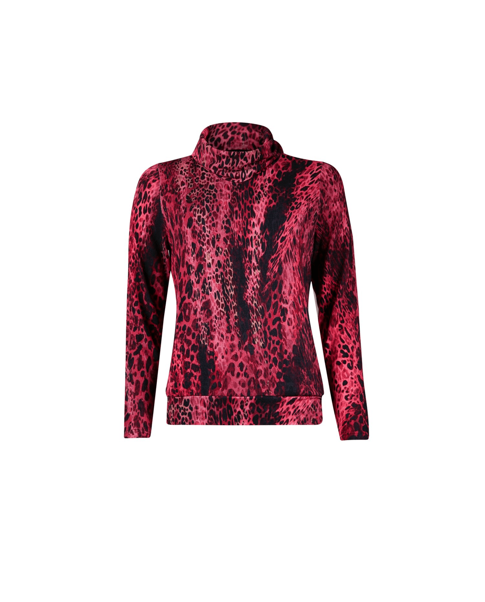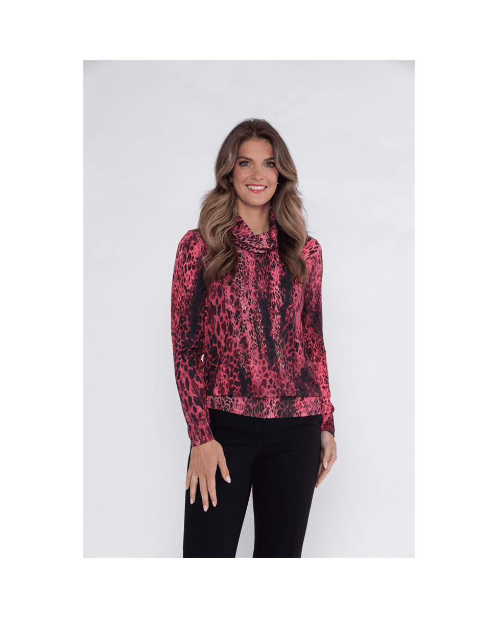 Dames shirt van Roberto Sarto met dierenprint, hangcol, brede onderboord en lange mouwen