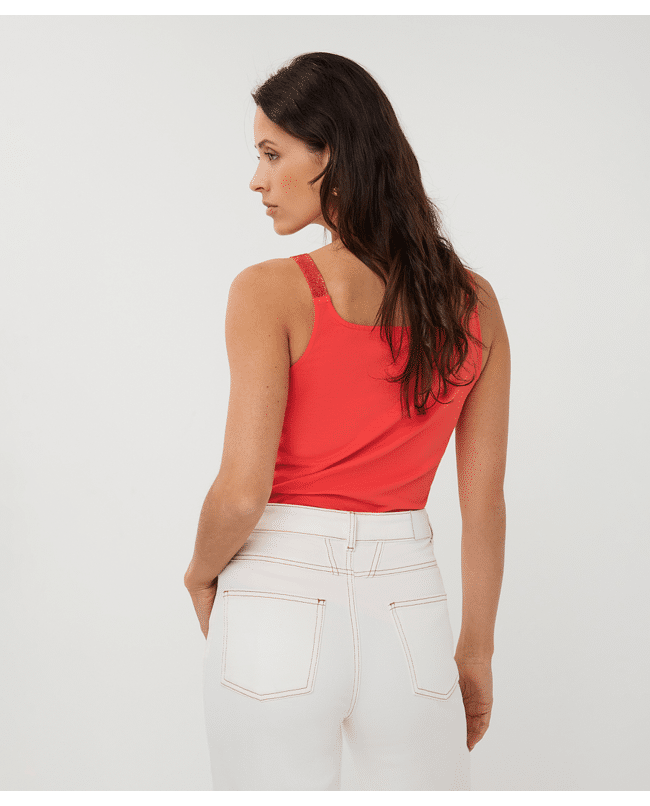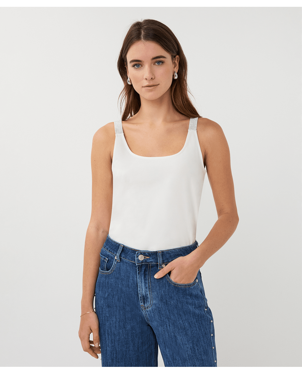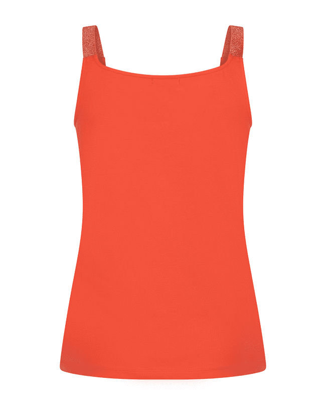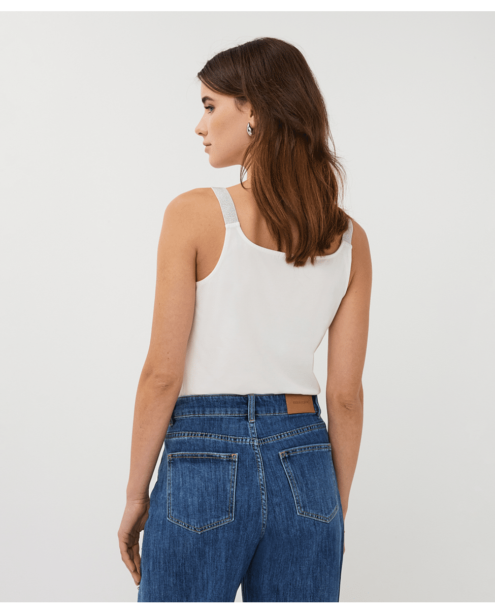 Een zomerse singlet met verfijnde lurexbandjes voor een subtiel vleugje glans. Uitgevoerd in een zachte katoenmix met stretch voor optimaal draagcomfort.