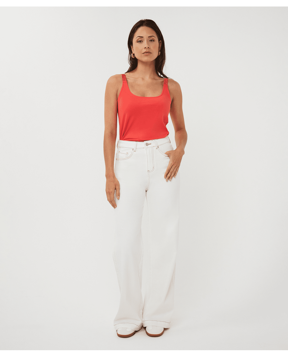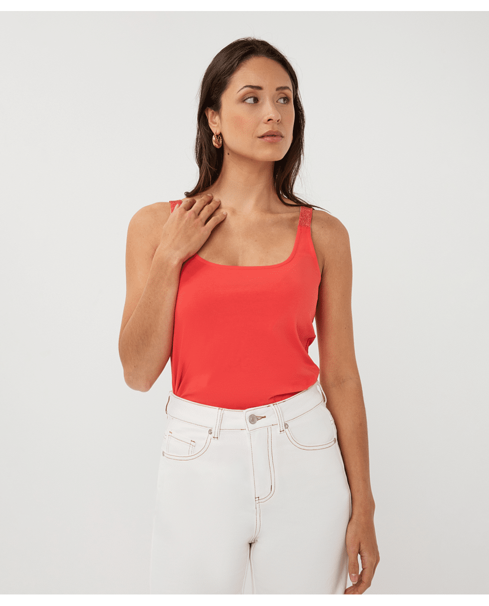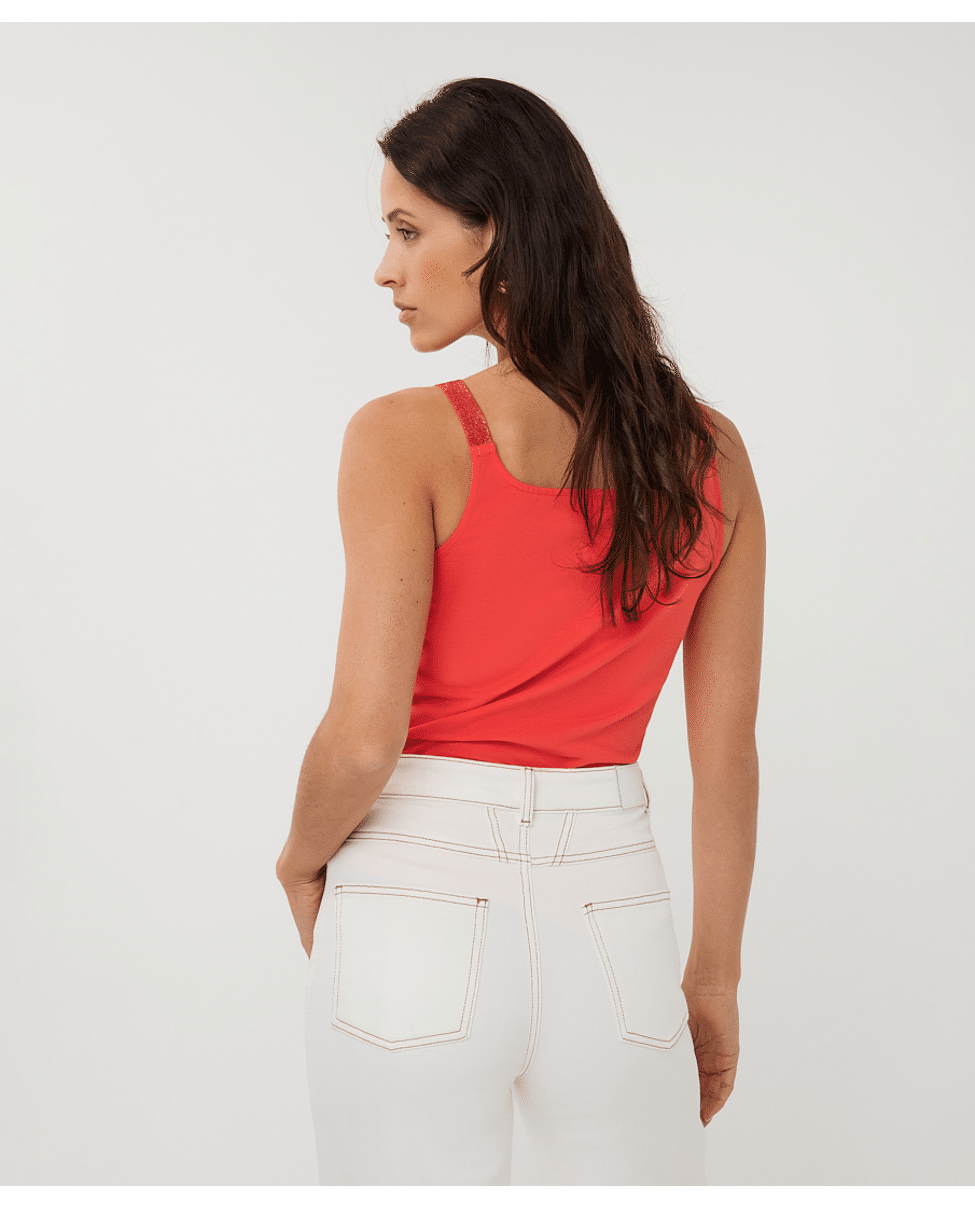 Een zomerse singlet met verfijnde lurexbandjes voor een subtiel vleugje glans. Uitgevoerd in een zachte katoenmix met stretch voor optimaal draagcomfort.