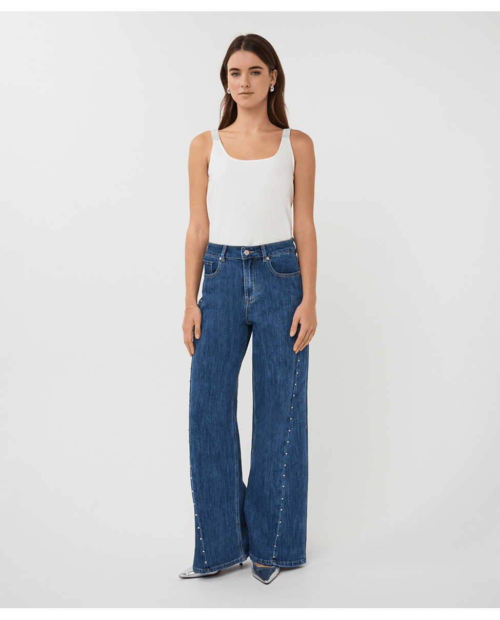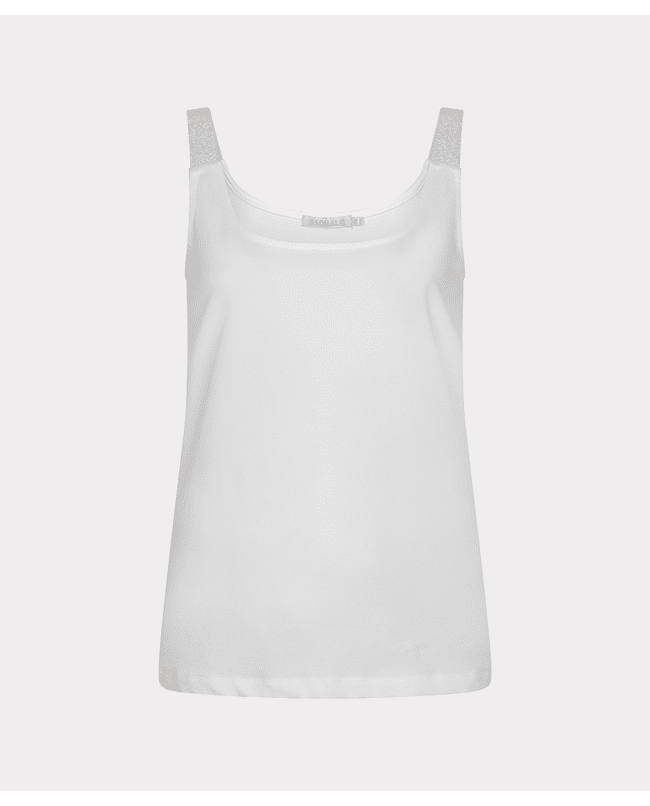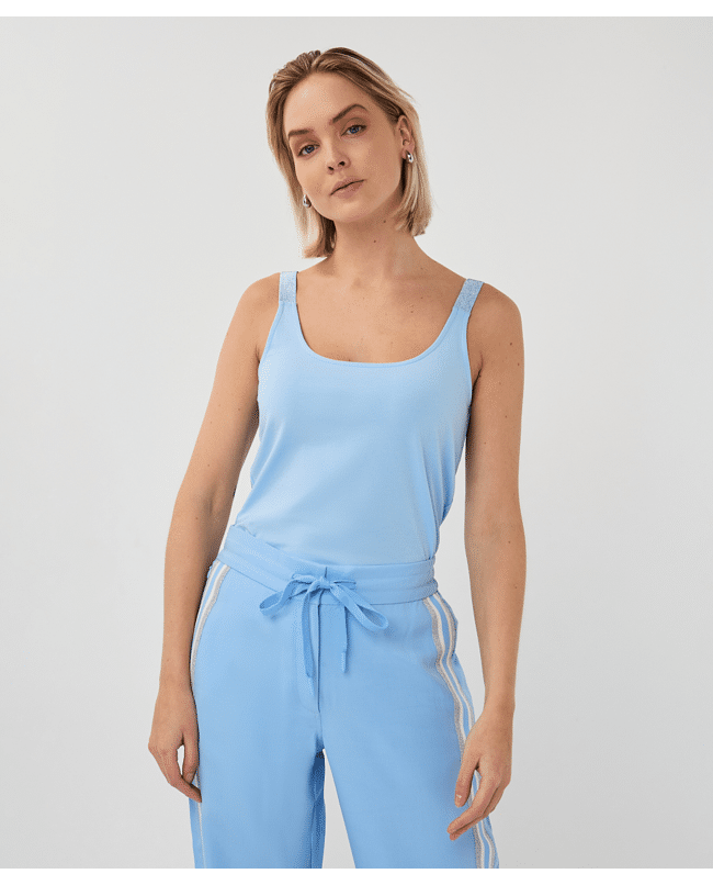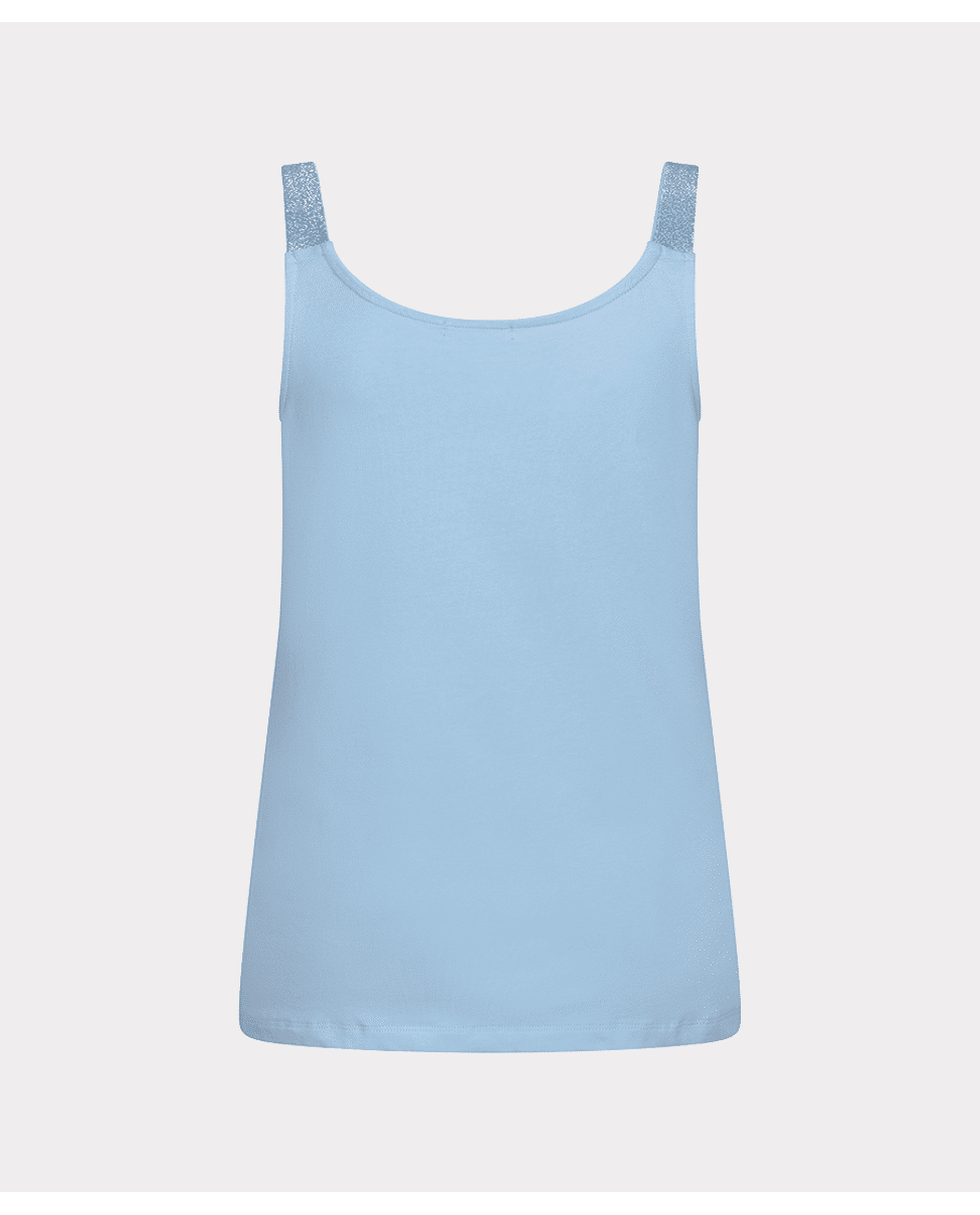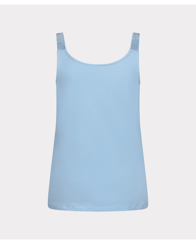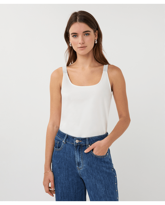 De glinsterende schouderbandjes geven deze basic top een elegante twist — eenvoudig, maar met een chique detail.