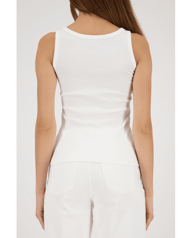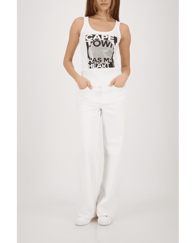 Deze witte rib singlet met “Cape Town” print geeft je outfit een frisse, moderne twist. Perfect voor zomerse dagen of als layering piece onder een blazer.