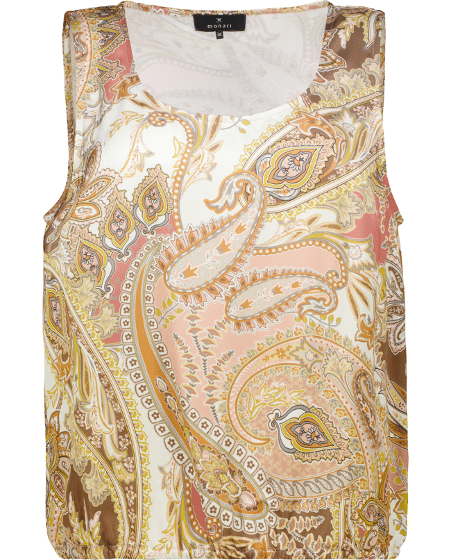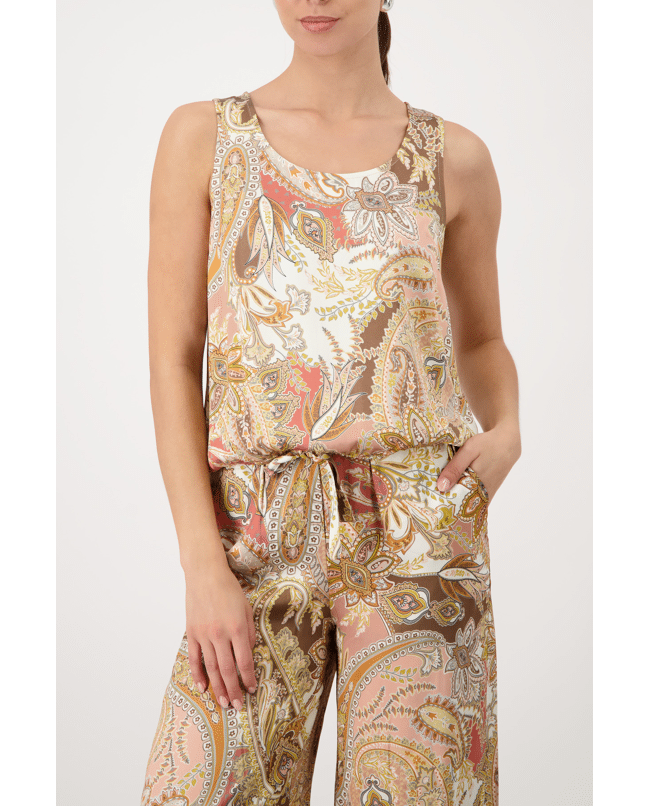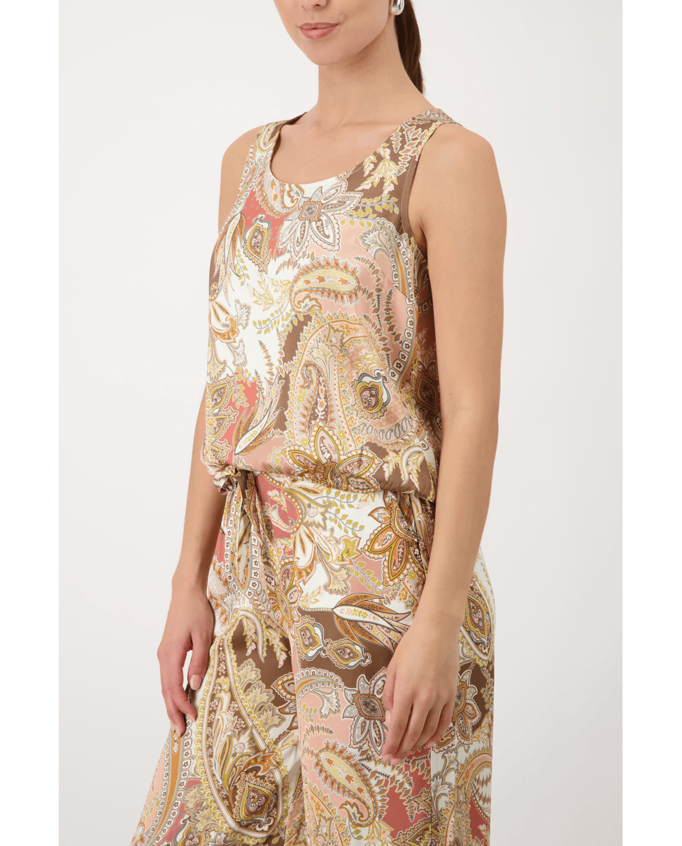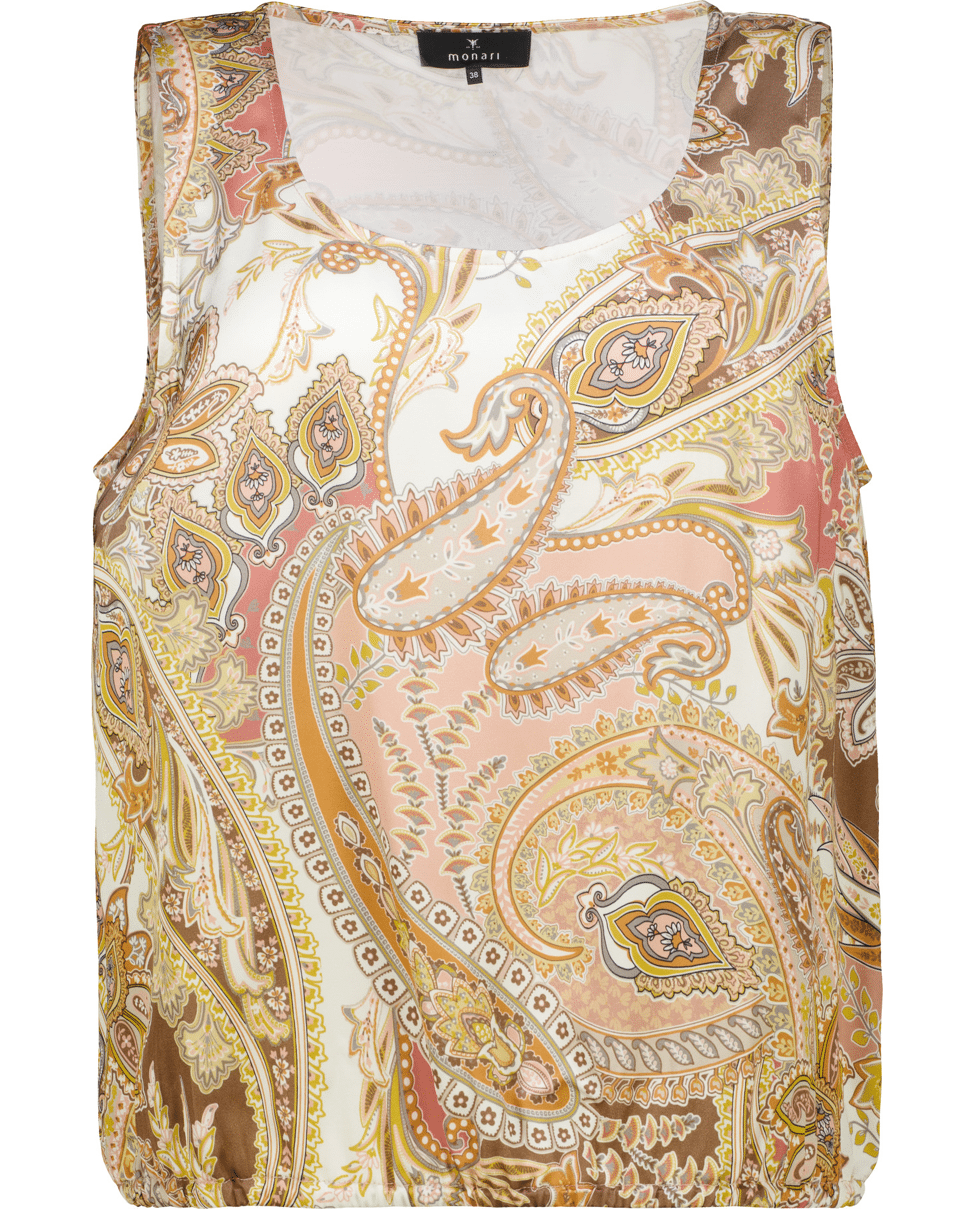Deze top met paisleyprint in warme tinten geeft je outfit een luchtige en zomerse uitstraling. Perfect voor een casual dag of als set met een bijpassende broek.