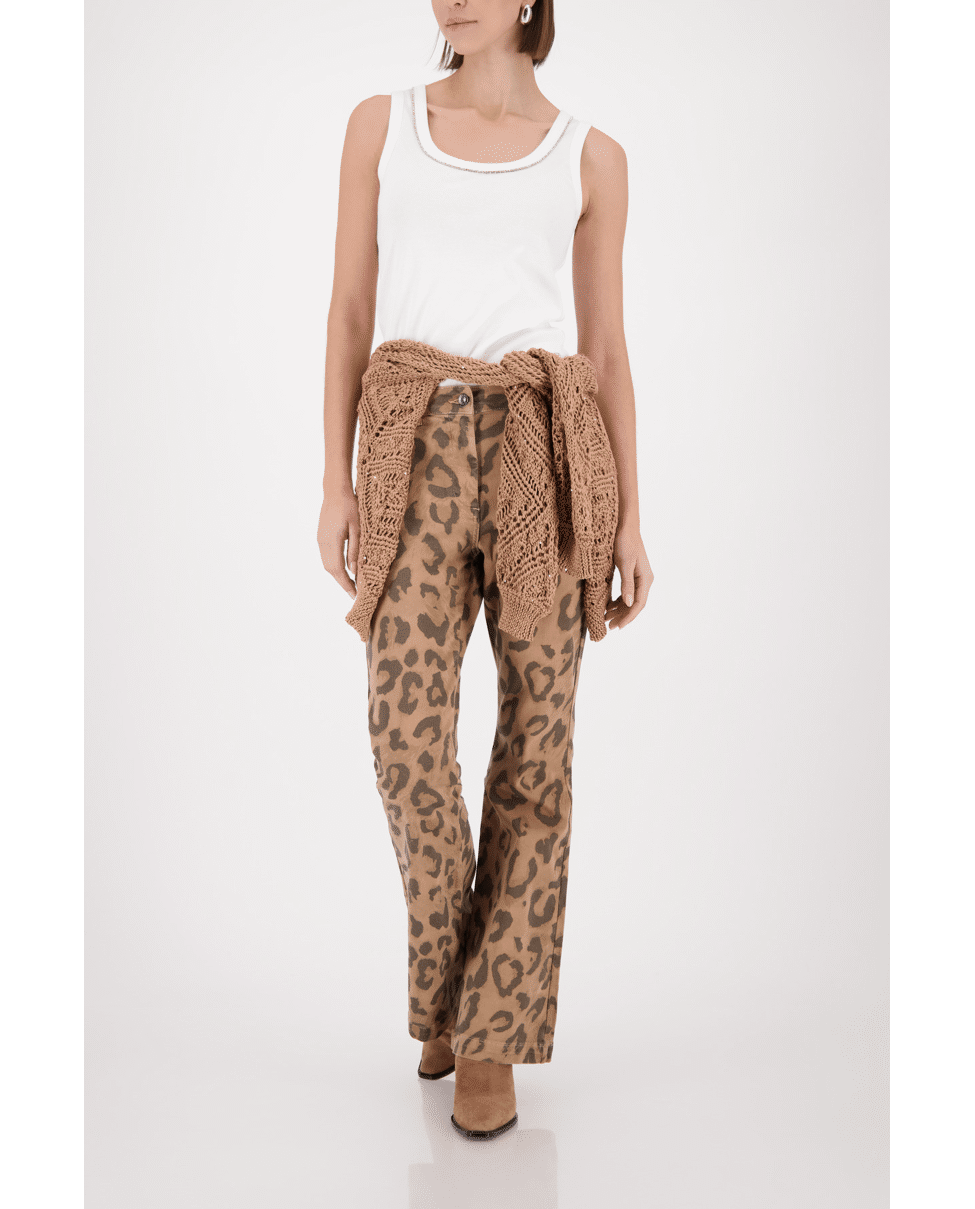 Dit damessinglet van Monari is een verfijnde basic met een subtiele sparkle. De ronde halslijn is afgewerkt met een fijne decoratieve rand, wat het net wat specialer maakt. Perfect om solo te dragen of als laagje onder een blazer of vest.