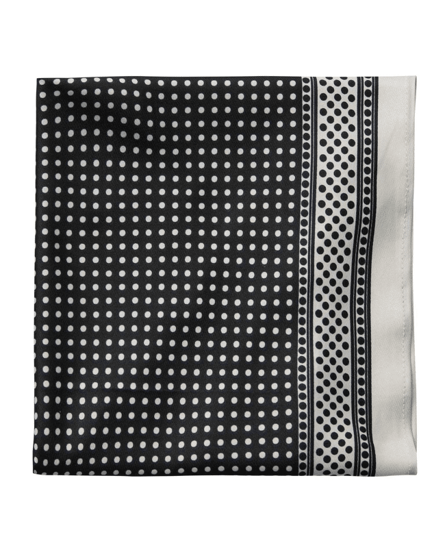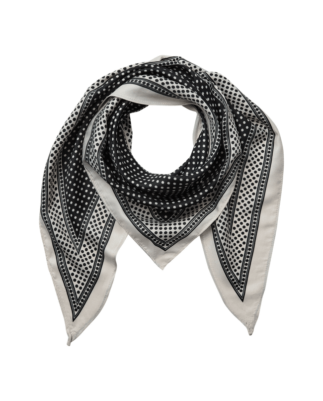 De klassieke polkadotprint en sjaalvorm geven eindeloze stylingmogelijkheden: draag 'm als rok, top of accessoire.