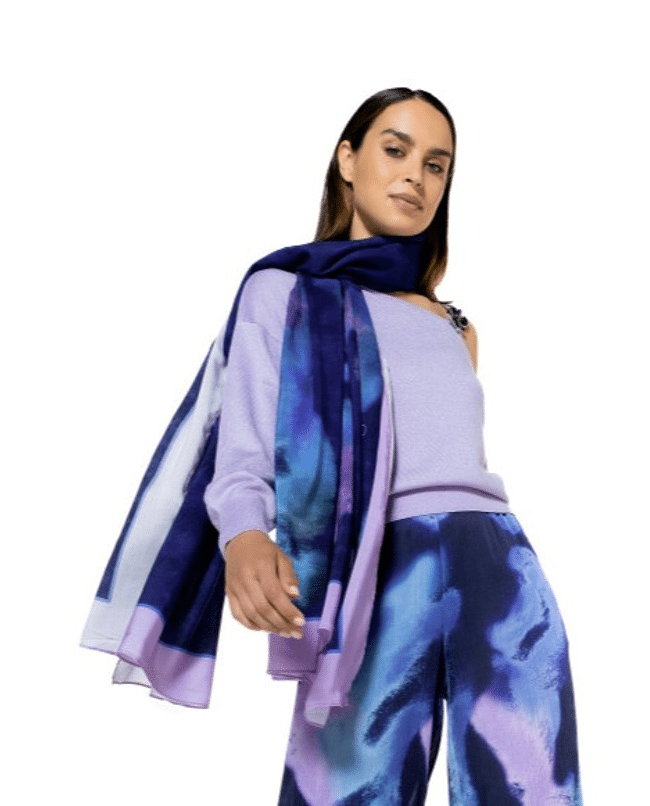 Bij Clous Mode koop je online de rechthoekige dames sjaal van Caroline Biss met kleurenoverloop, nr 6002