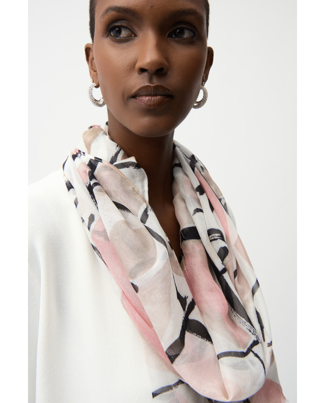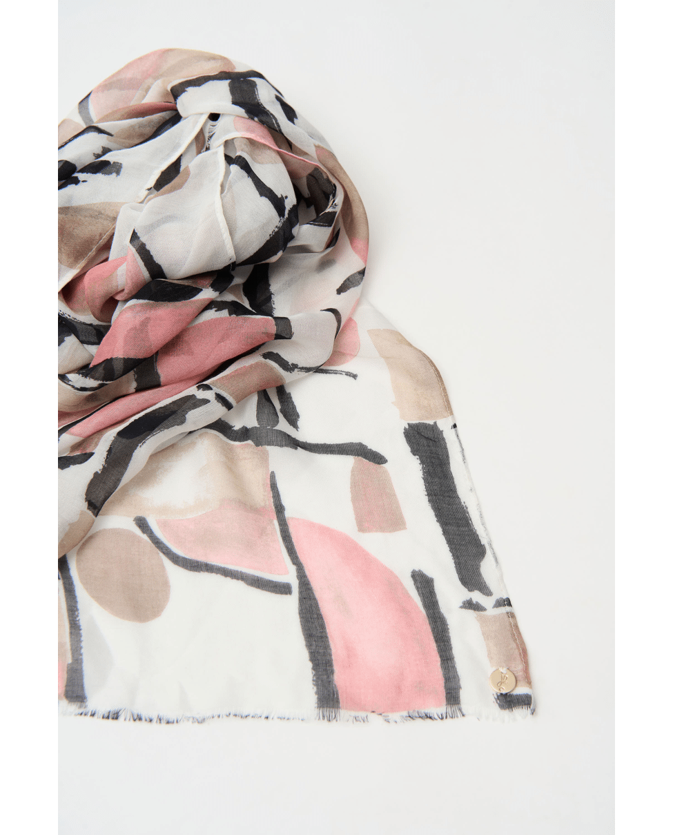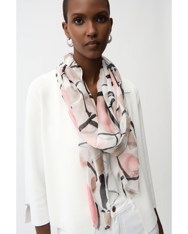 Dames sjaal van Joseph Ribkoff met abstracte print en randen met korte franjes aan de uiteinden