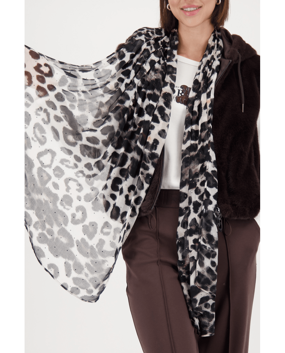 Sjaal van Monari met luipaardprint en strassteentjes