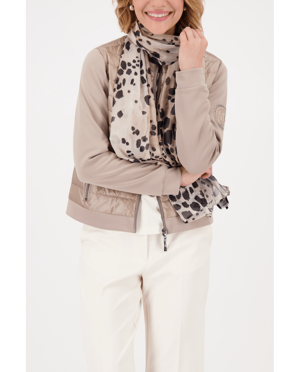 De combinatie van neutrale tinten en dierenprint maakt deze sjaal veelzijdig – makkelijk te stylen bij zowel jassen als blazers.