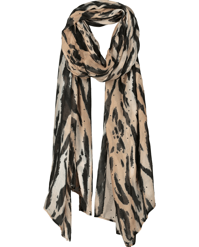 De dierenprint in neutrale tinten maakt deze sjaal makkelijk combineerbaar. Staat prachtig bij een effen jas of trui.