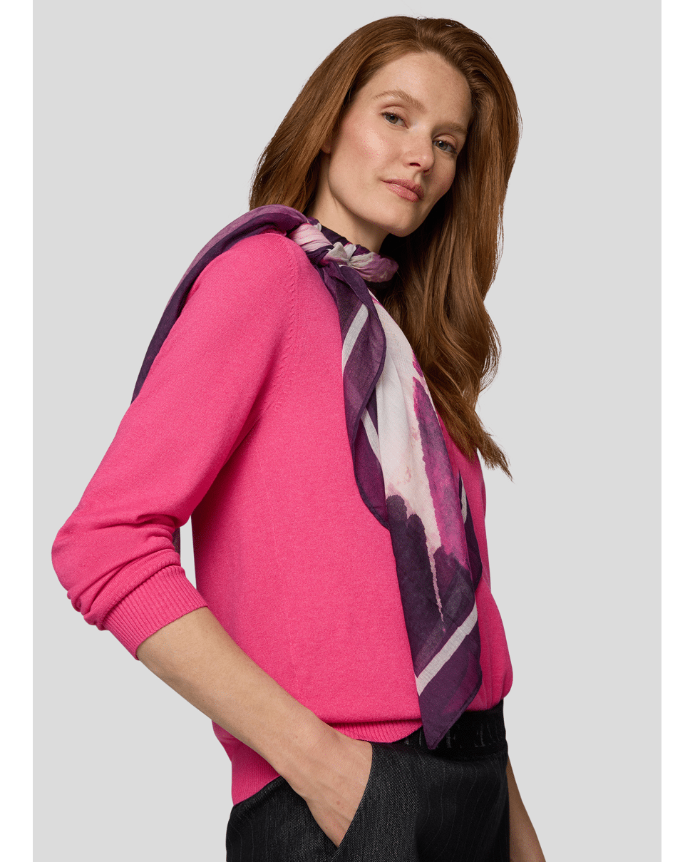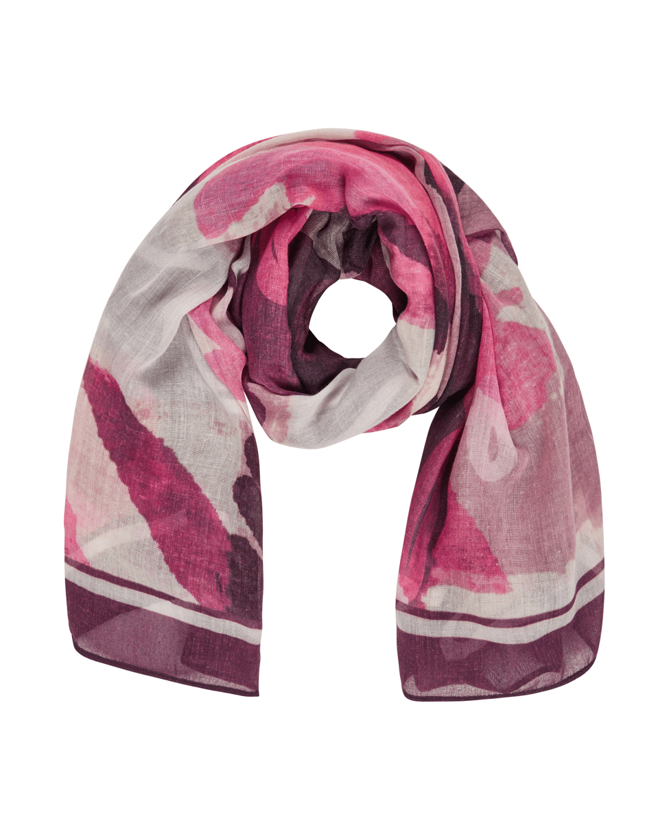Deze sjaal met abstract bloemenmotief voegt kleur en zachtheid toe aan je herfstlook. Lichtgewicht en soepel – perfect voor een subtiele finishing touch.