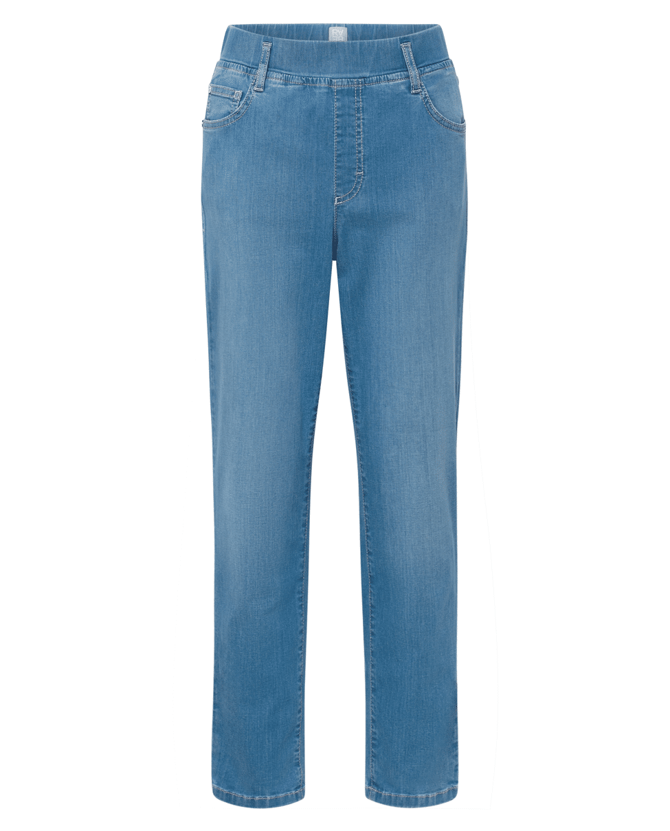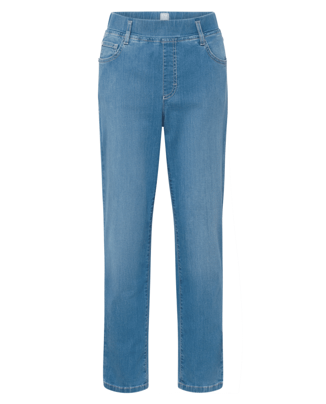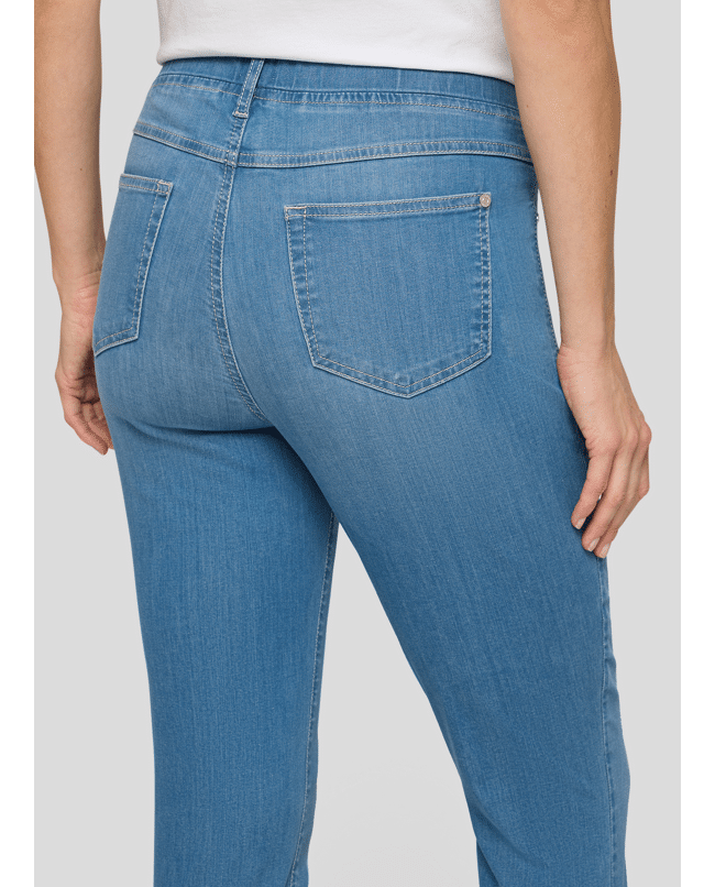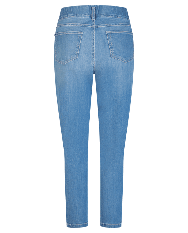 De elastische tailleband geeft deze jeans een relaxte vibe – perfect voor onderweg of thuis op de bank.